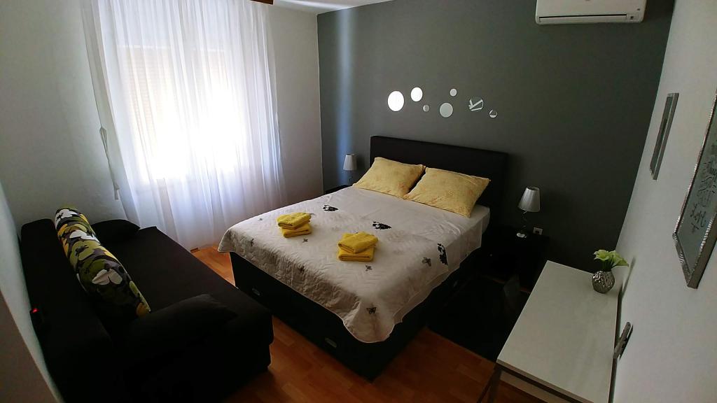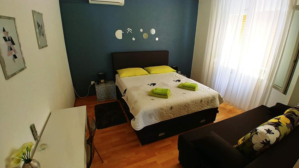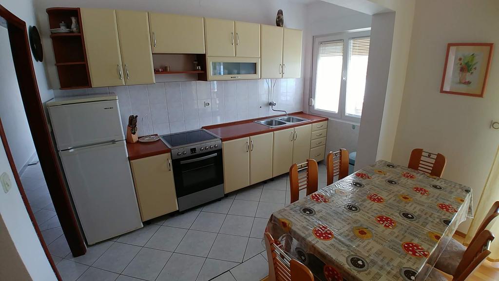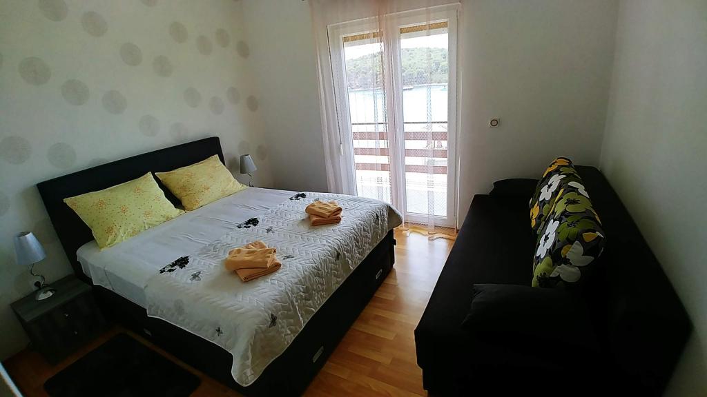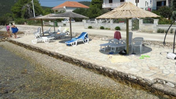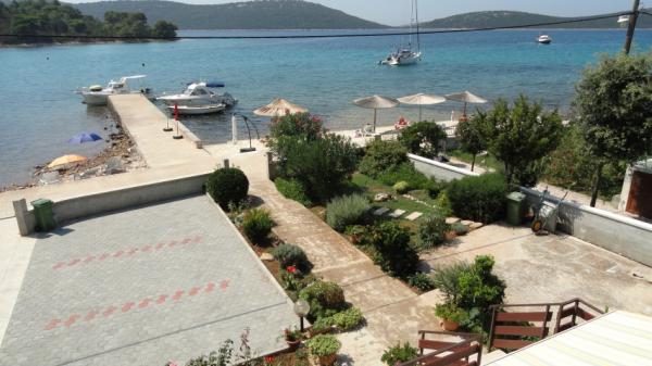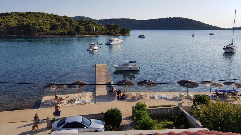 Apartment Mira is located in Brgulje on the island of Molat. It is located on the first floor of a family house by the sea. The apartment has a separate entrance, and consists of 3 bedrooms with 3 bathrooms, living room, kitchen, two front terraces overlooking the sea and a spacious terrace behind the house. Direct access to the sea is from a long mill in front of the house with a paved beach covered with umbrellas. Mol can also be used for boat mooring. An ideal place to stay for a larger family or larger family with children. Welcome!