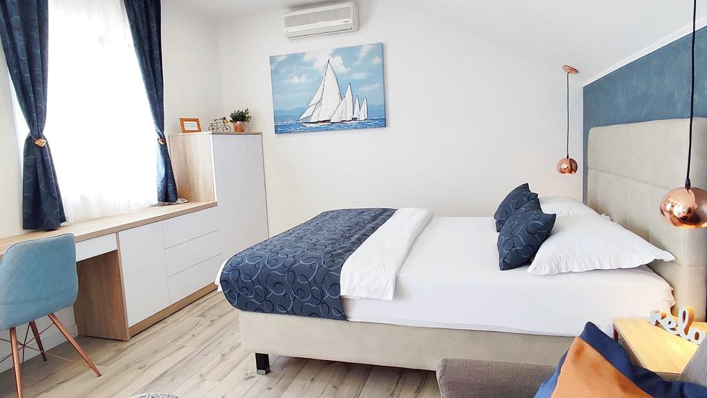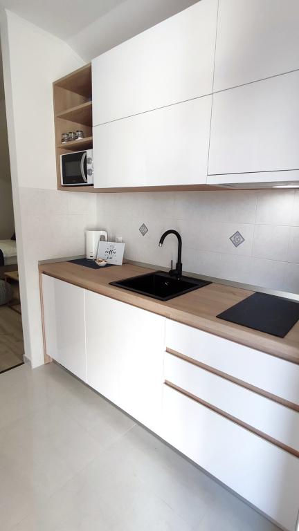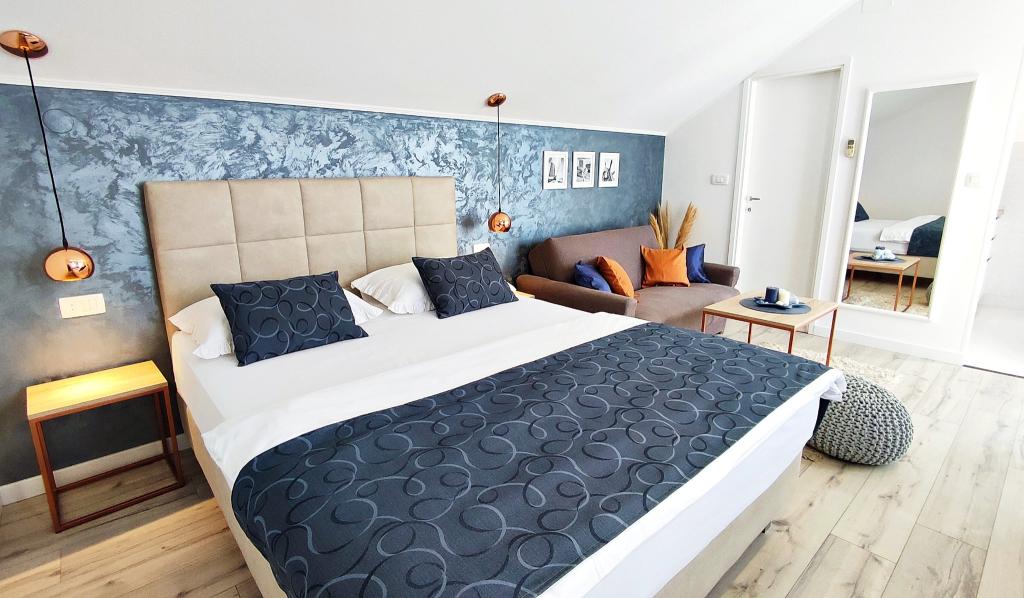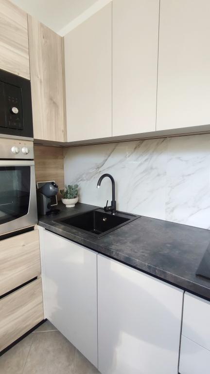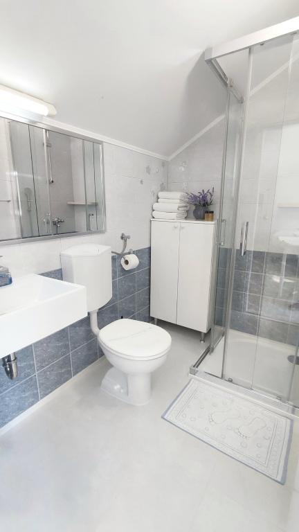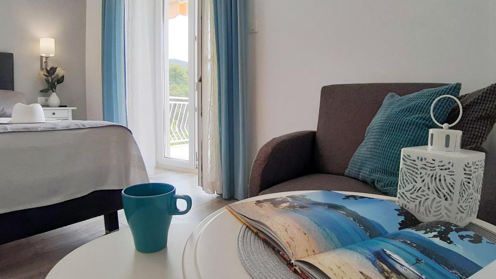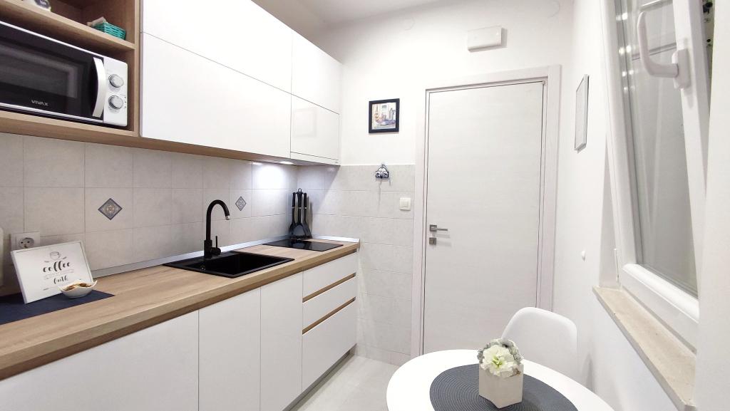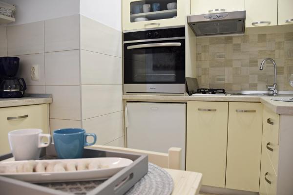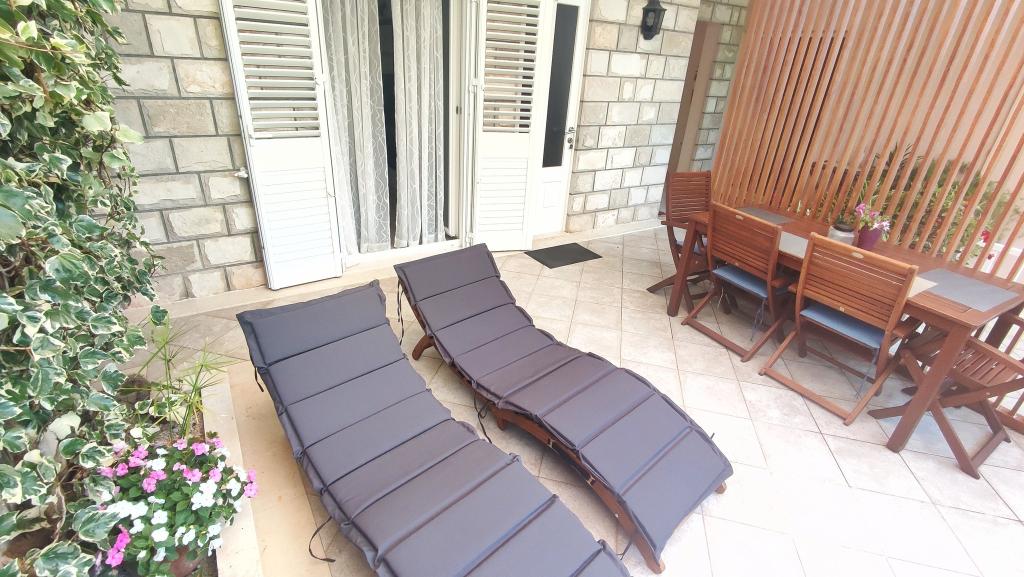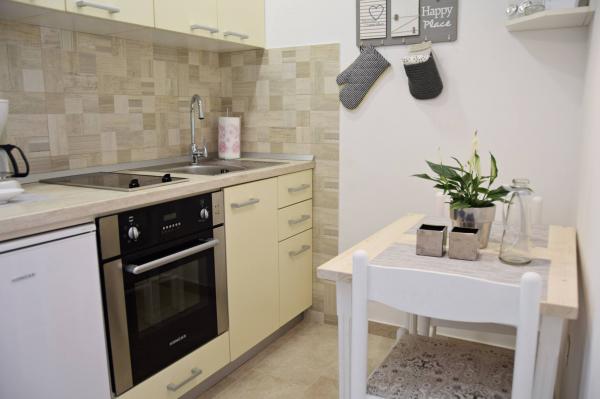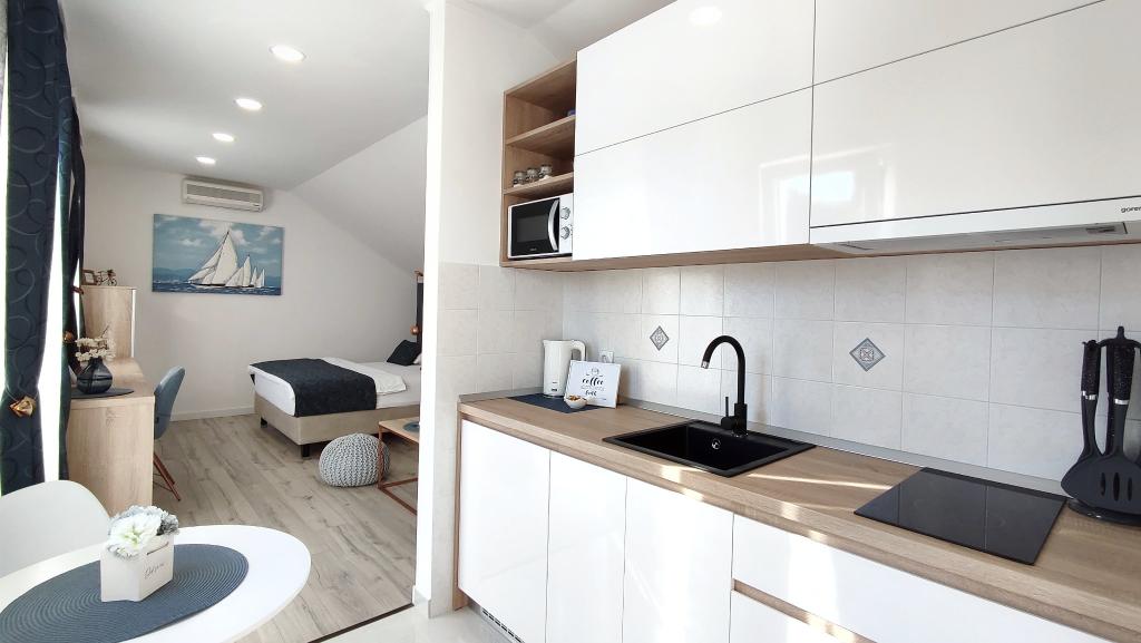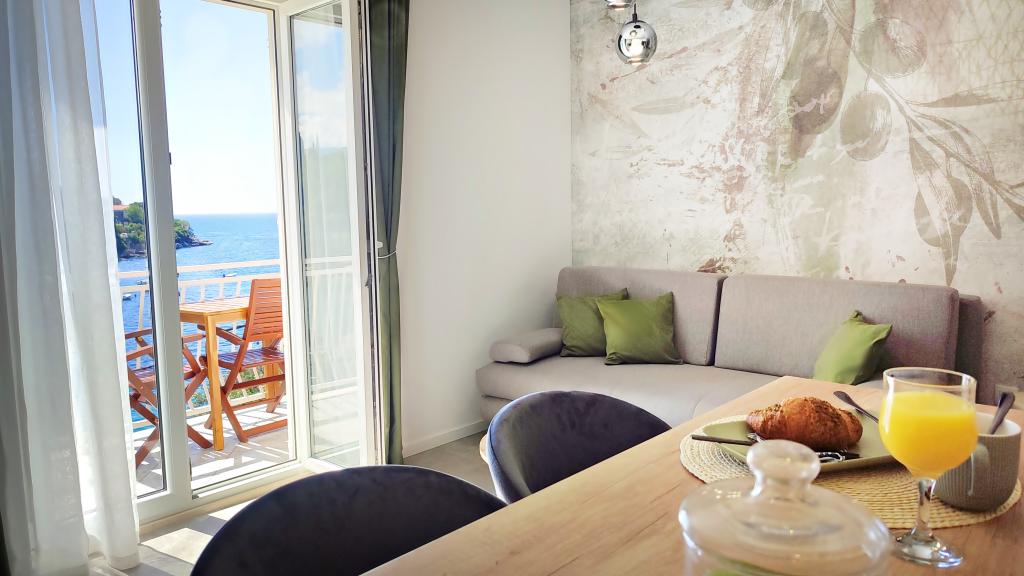 I will start with the hosts, because they are wonderful. Karmen and the whole family will make your vacation extremely pleasant. They are there for every question and every kind of help. We were greeted by a clean and tidy, beautifully designed apartment, fully equipped with everything needed in the kitchen and bathroom. Towels and cloths are changed regularly, every two days. They also make fine olive oil, which you can buy in the building. The apartment is perfectly positioned, with its own small stone beach where there is shade in the afternoon. You can stay cold all day if you position yourself under a tree. We could use the barbecue on the beach at any time, it is available to guests. The nearest restaurant is 3 steps from the property and has good cuisine, with standard prices for the Croatian coast. A smaller shop is a 3-minute walk away, but it is well equipped. There is also a smaller sandy beach near the shop, and a larger one is about a 10-minute walk away. The whole town is beautiful and quiet, ideal for a peaceful vacation.