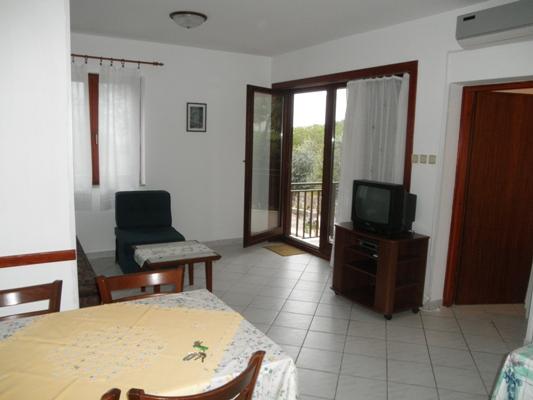 The apartment is located in a building (new building) not more than 300 meters away from the center of Moscenicka Draga, from the beach, bank, post office, restaurants, cafes and other facilities. It takes only a few minutes to walk along the shady road. The building is located near the main road but is in a quiet place and is surrounded by greenery. In front of the building we have a large, free parking for our guests. Apartment No. 8 The apartment is on the ground floor and has about 50 square meters. It has its own entrance, a room with two beds, a private bathroom, a kitchen, a small living room with two extra beds and a balcony. The apartment also has satellite TV and air conditioning. Apartment No. 9 The apartment is on the ground floor and has about 40 square meters. It has a private entrance, a double room, a private bathroom, a kitchen, a small living room with a sofa with two extra beds and a balcony. The apartment also has satellite TV and air conditioning.