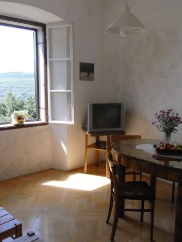 The house is surrounded by a stone wall which encompassed the garden and the croft having together 800 sqm, ideal for various board games, barbecuing (a coal and gas barbecue is available). We can organize a traditional Istrian meal, riding excursions in groups, bicycle ridings along bicycle paths, survival workshops, namely orientation in nature with a specially trained coach. The spa Istarske toplice is nearby, and there you can follow therapeutic or wellness programs. You need 20 minutes to reach the beach in Novigrad by car, and 30 to Poreč. From the house, can enjoy a marvellous view of the environs of Motovun.