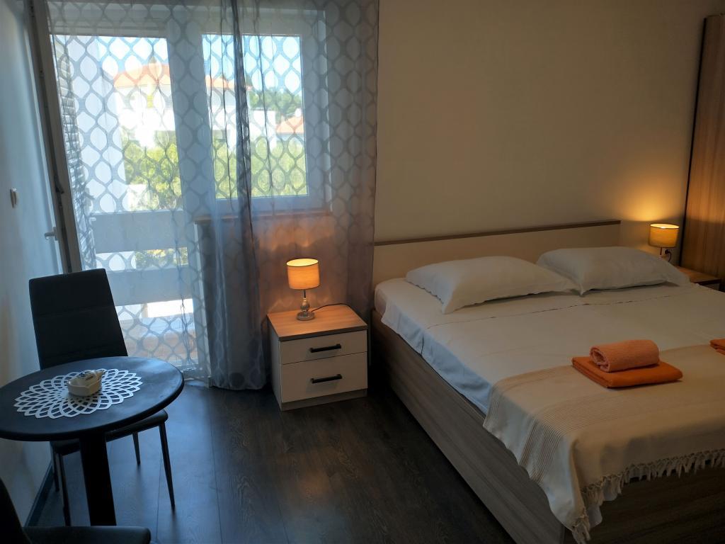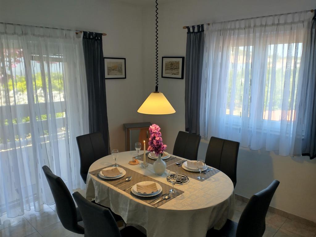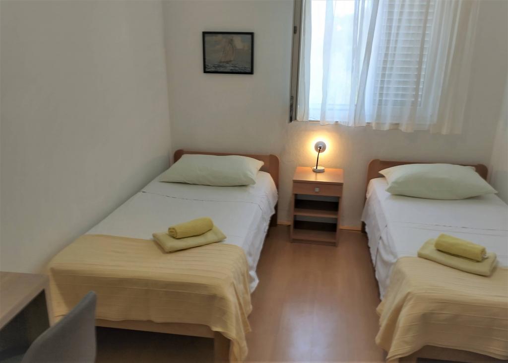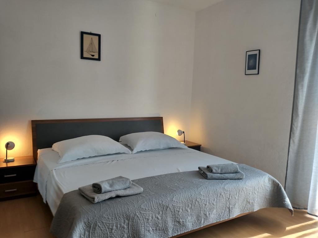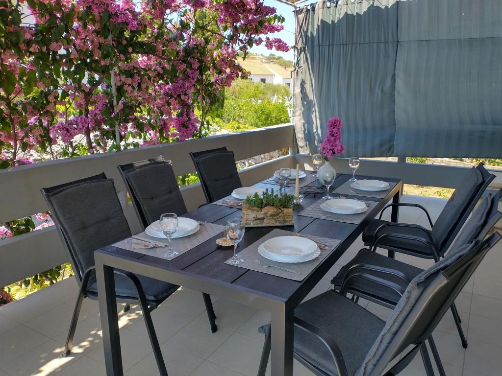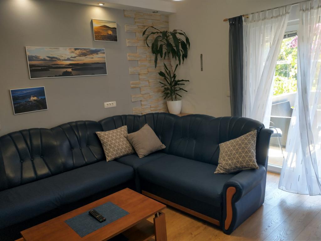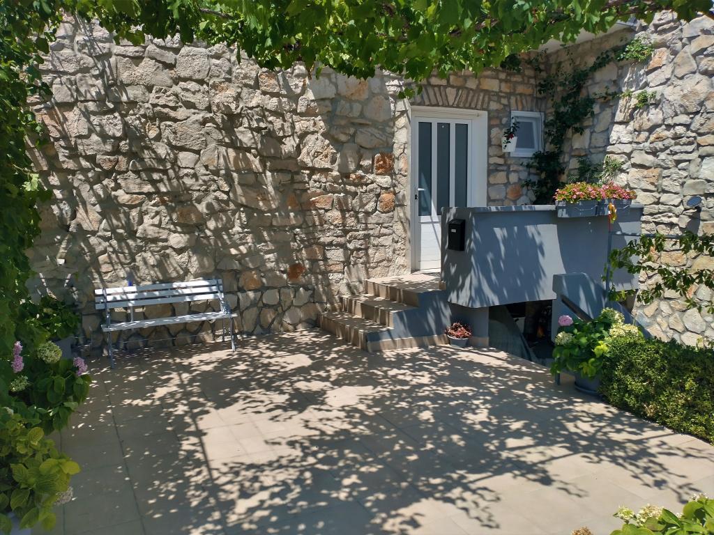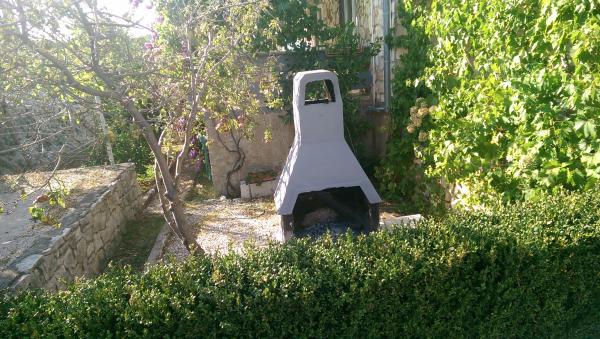 The house of the Ježina family is located in Murter, 300m from the beach. A 100m2 apartment with a terrace and balconies is at guests' disposal. Three double rooms with two extra beds, kitchen, dining room, living room, bathroom, toilet, large terrace in natural shade and balconies with a view of greenery, the neighborhood and the sea in the distance, suitable for families-friends, or groups of 6 to 8 members. The large garden and distance from the road will provide safety for children, while the mobile barbecue and the shade of the vines and olive trees will provide pleasure for adults. The Ježina family is able to introduce their guests to their own olive groves on the nearby islands, by arrangement.