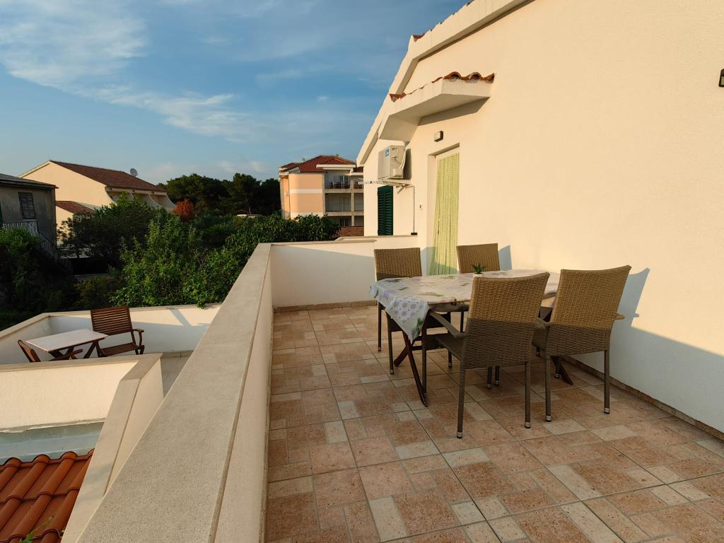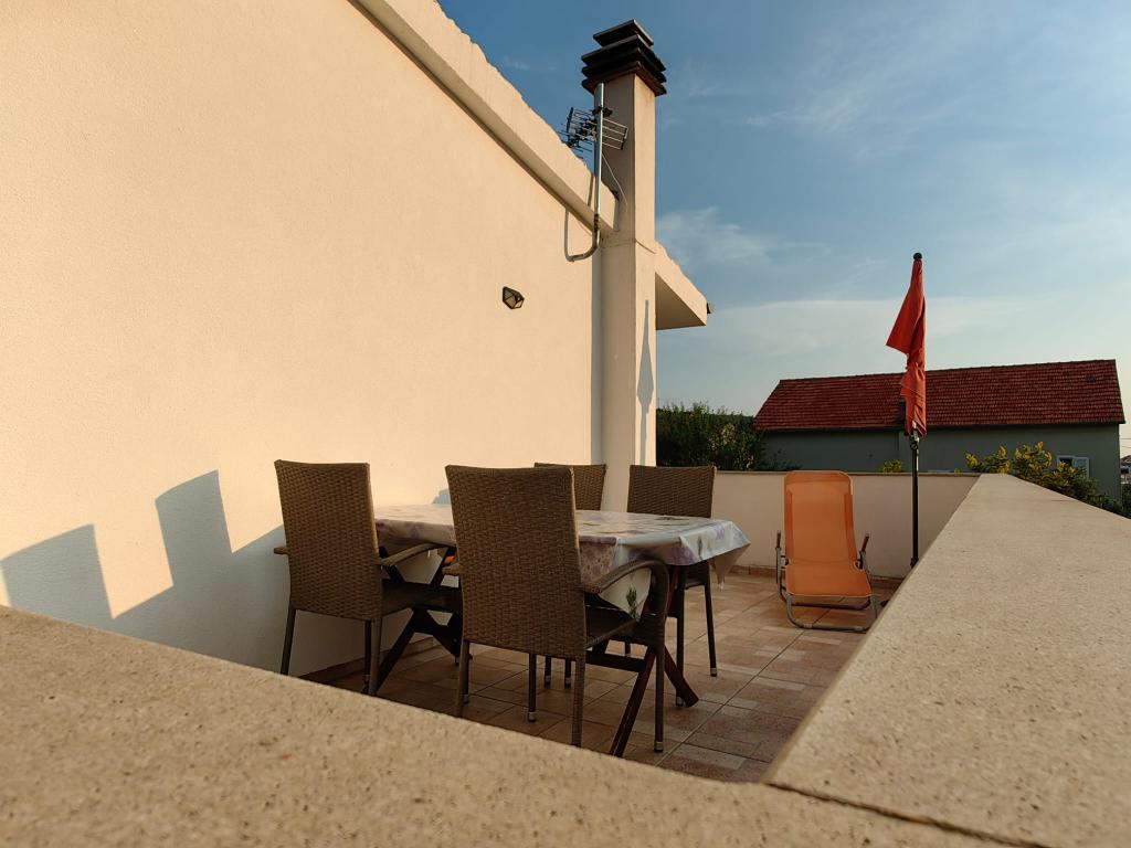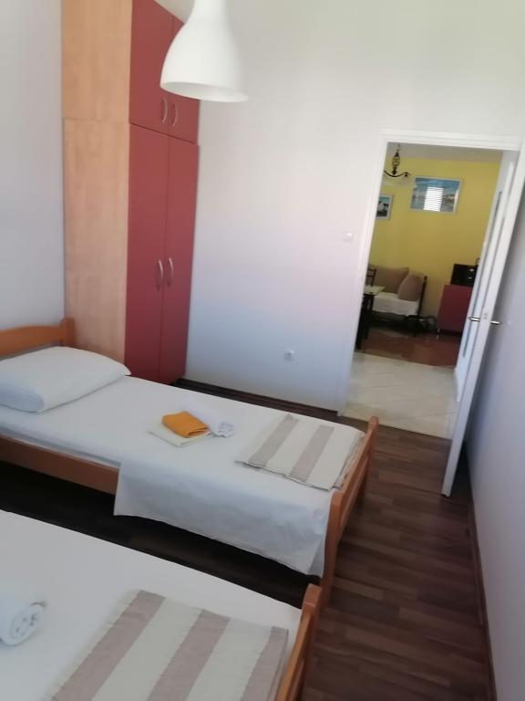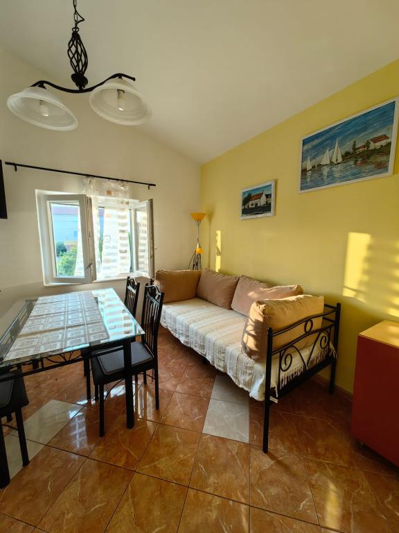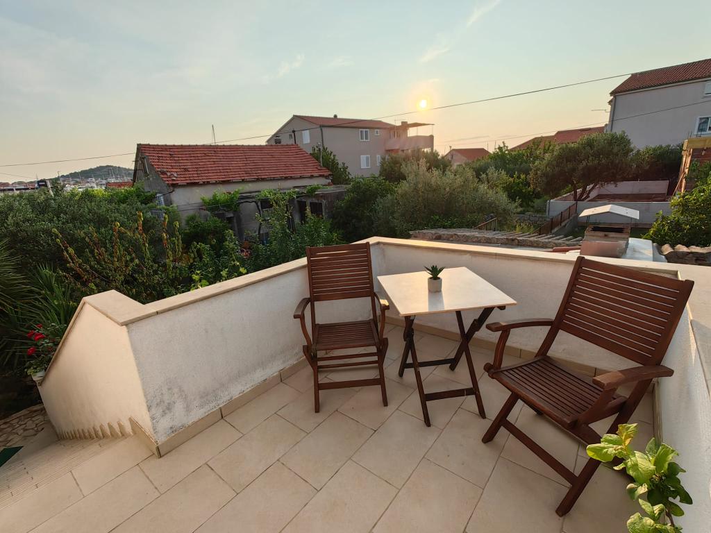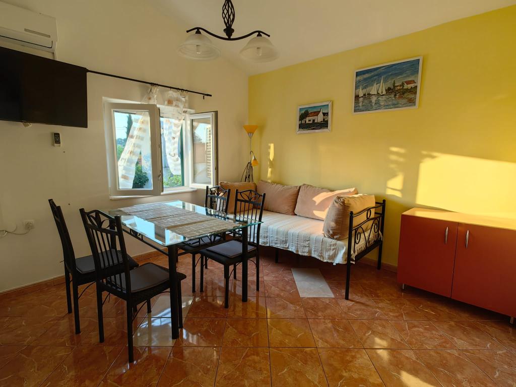Apartment Lucija is located in a quiet part of Murter. Just a few steps from the first beach and the town center, a peaceful vacation awaits you. There is only one apartment in the house located on the first floor. It consists of a fully equipped kitchen with a living room, two bedrooms and a bathroom. The apartment has a large terrace with a view of the marina and Hramina bay, as well as a smaller balcony.