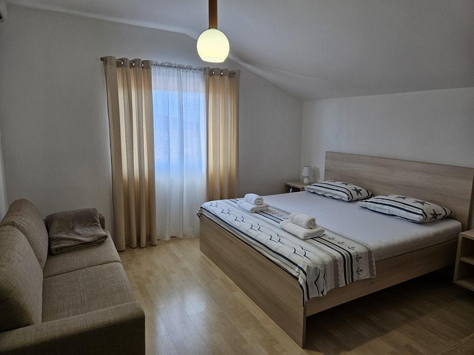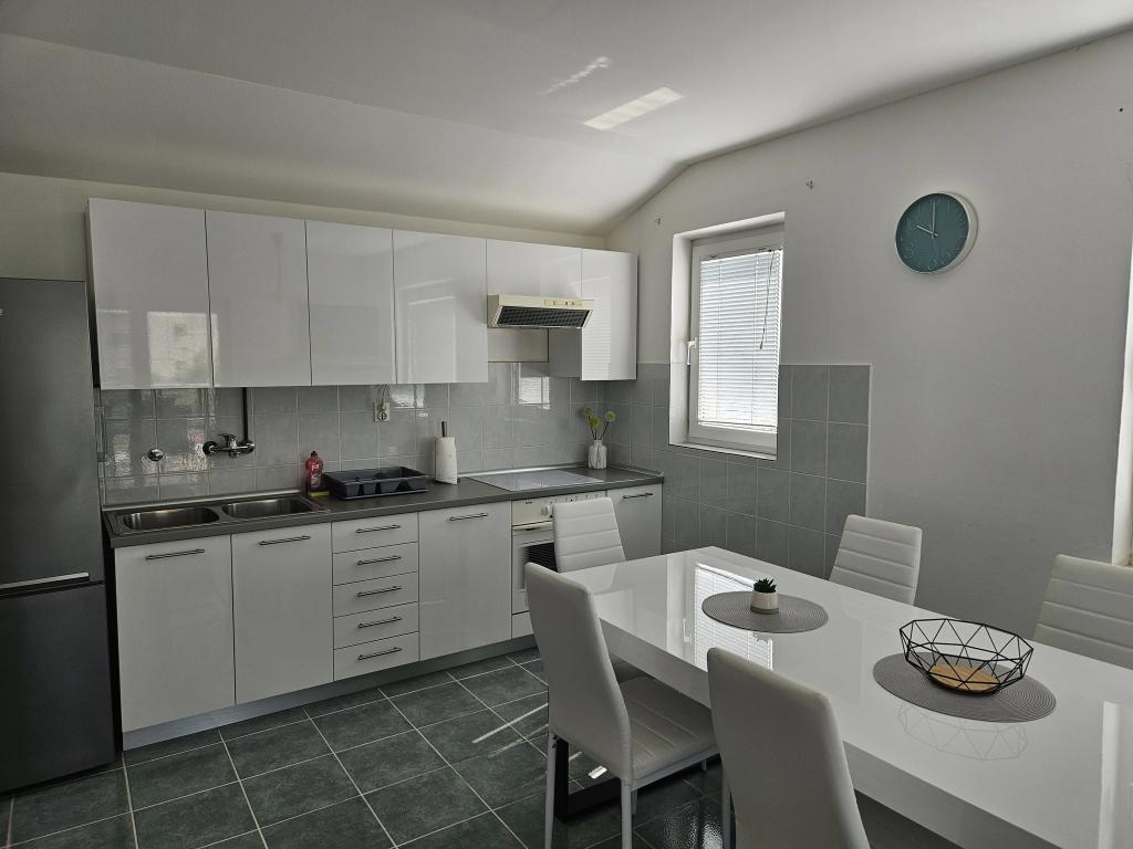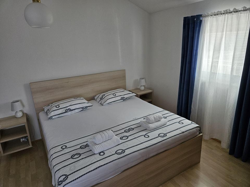 Modernly furnished apartment is located 600 meters from the sandy beach Slanica, one of the most beautiful beaches in the area. The apartment has 100 m2, 3 bedrooms, 2 bathrooms, kitchen with dining table, large terrace, air conditioning in each room, wi-fi, TV, satellite TV, dishwasher, barbecue, secured parking for 2 cars, garden and gazebo for relaxation. The price includes bed linen, towels, final cleaning and tourist tax.
