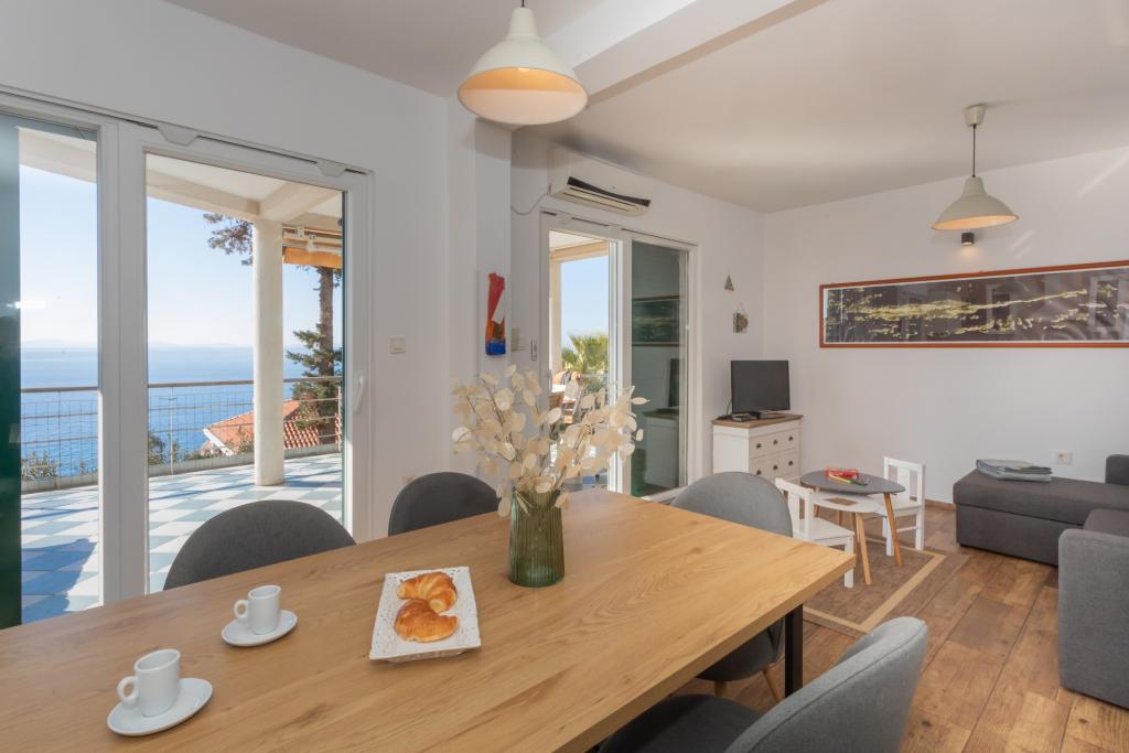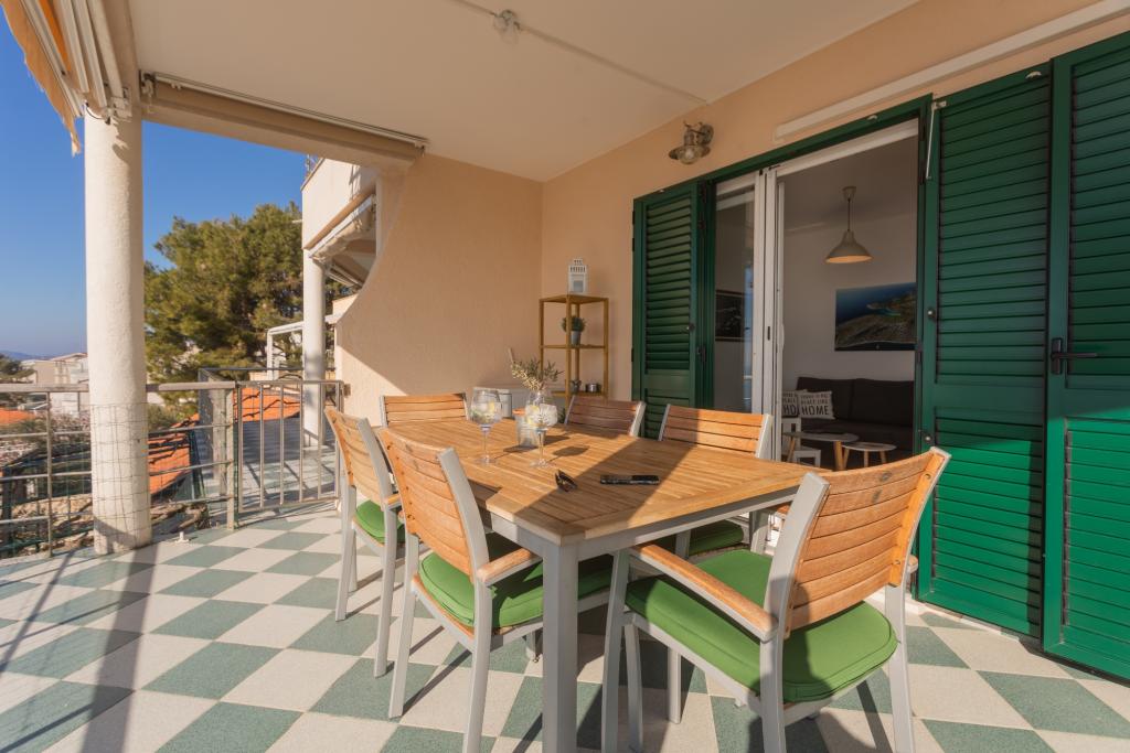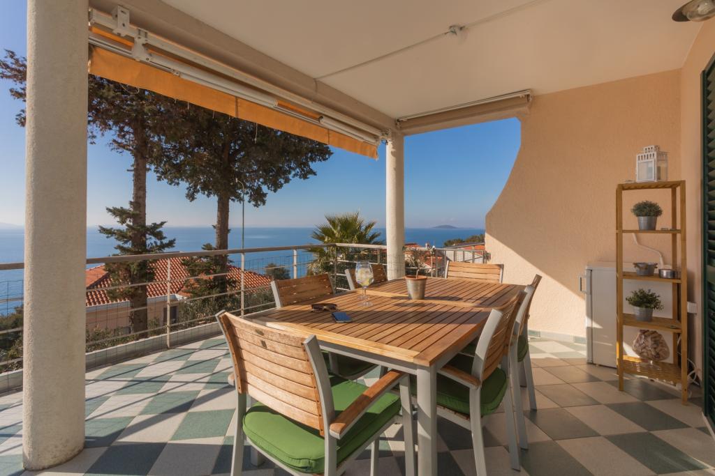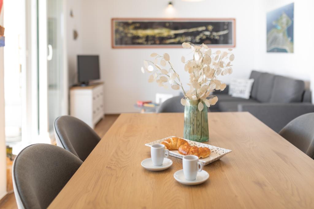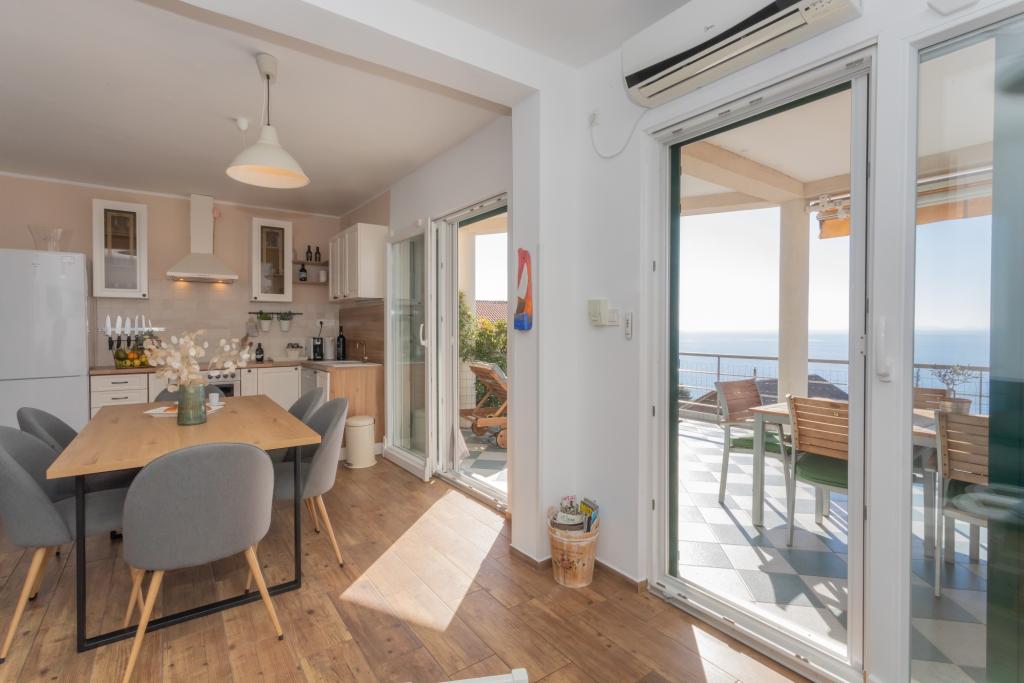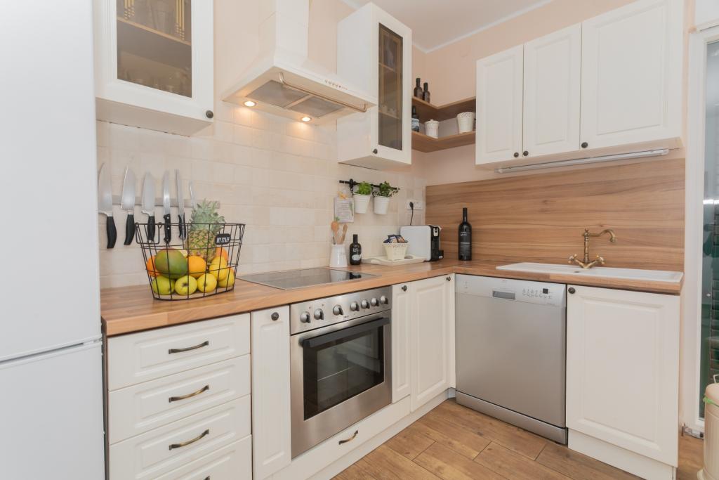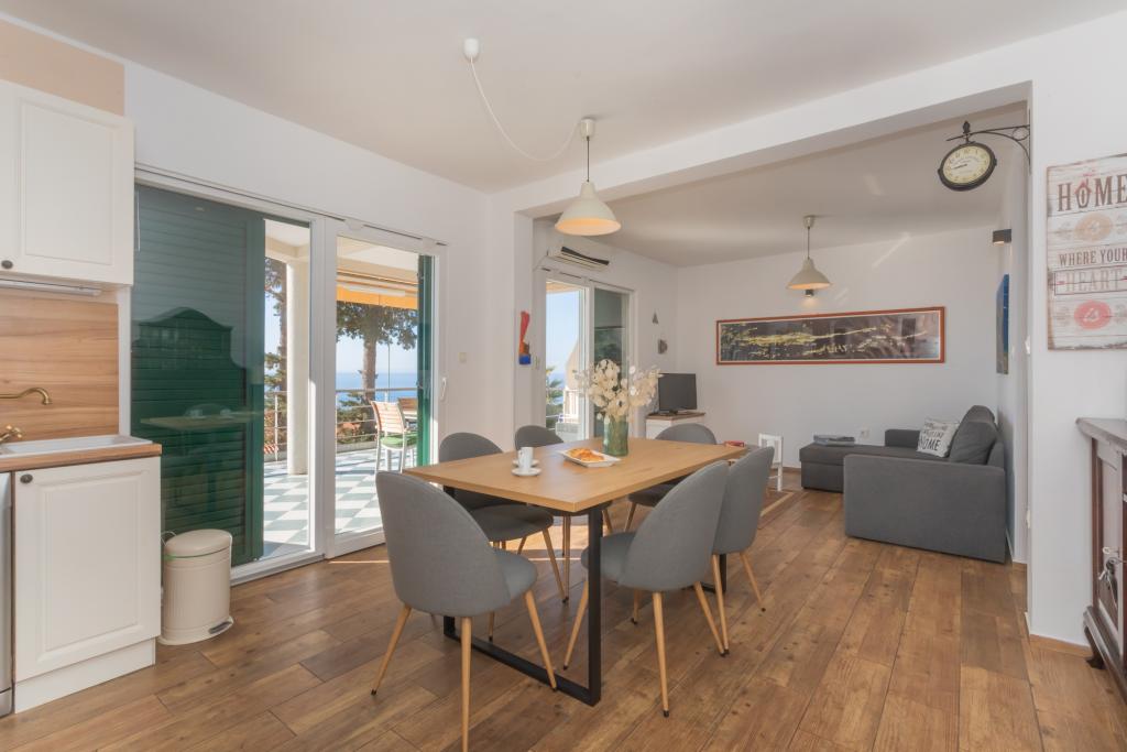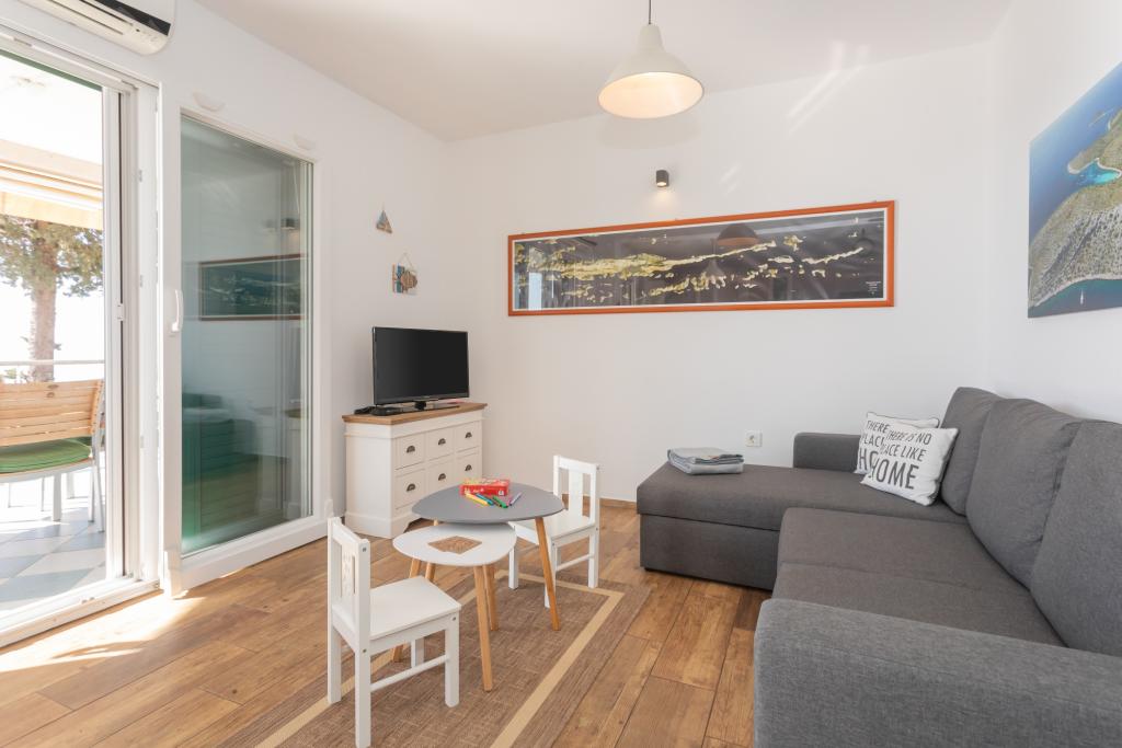 Modernly equipped apartment with a beautiful sea view, just 40 m from the sea, 65 m2 in size. The apartment has two bedrooms for 4 people plus an extra bed for one person, bathroom, living room, kitchen and dining room and a beautiful terrace of almost 25 m2. The apartment is located on the first floor of the house and is equipped with TV/sat, PS 4, wi-fi, air conditioning, heating, oven, kettle, coffee maker, dishwasher, washing machine. The apartment has a barbecue and a summer kitchen in front of the entrance. Parking is provided and included in the price. The apartment itself is located in a very quiet part of Murter, 1100 m from the town center, 40 m from the sea and rocky beach, 300 m from the sandy and pebble beach Čigrađa and approximately 800 m from the sandy beach Slanica.