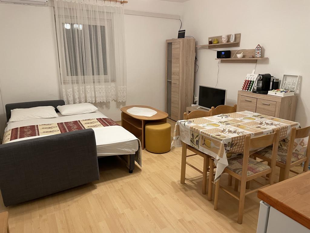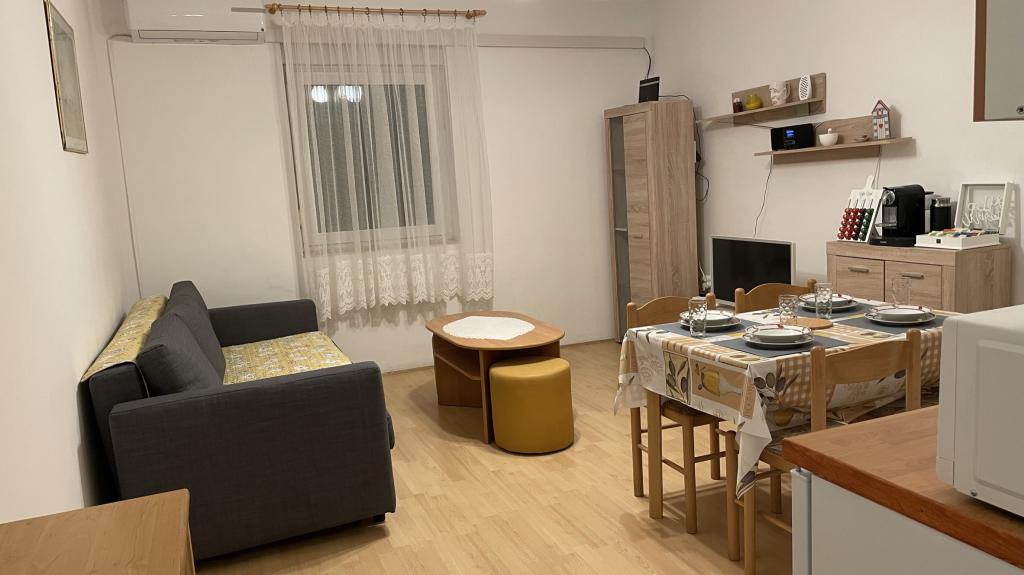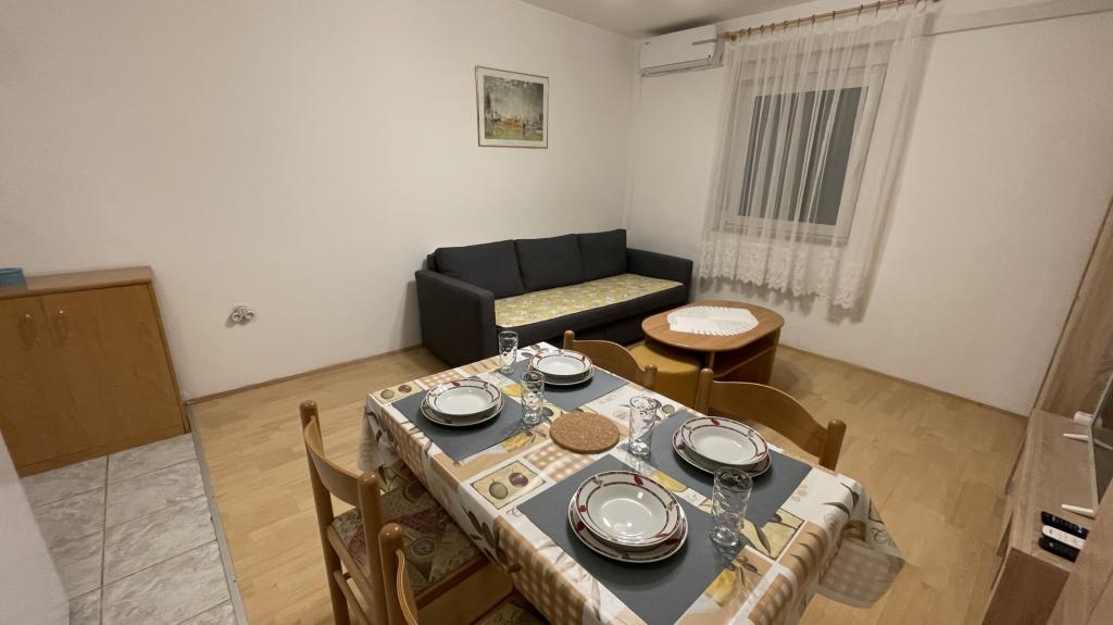 Good afternoon, we have started accepting reservations for 2024! Our prices for 2024 have not changed and the calendar is always updated on time. The apartment is located in Murter in Šibenik-Knin County. It is located directly on one of the most beautiful beaches in Murter, Slanica, and offers everything for your long-needed vacation. The apartment also has a terrace with a view of the beach and the sea. The apartment comes with a parking space, which is included in the price of the apartment. This apartment has 1 bedroom, a living room with a pull-out bed and a complete kitchen, making it an ideal place for a family vacation. The apartment also has a flat screen TV, WiFi, DAB+ radio, stove and washing machine in the recently renovated bathroom. In the immediate vicinity of the apartment there are cafes, restaurants, a tennis court and a children's water park. All catering facilities are open until 10 pm in the evening and after that the party moves to the center of Murter, which is about 15 minutes away by easy walk.