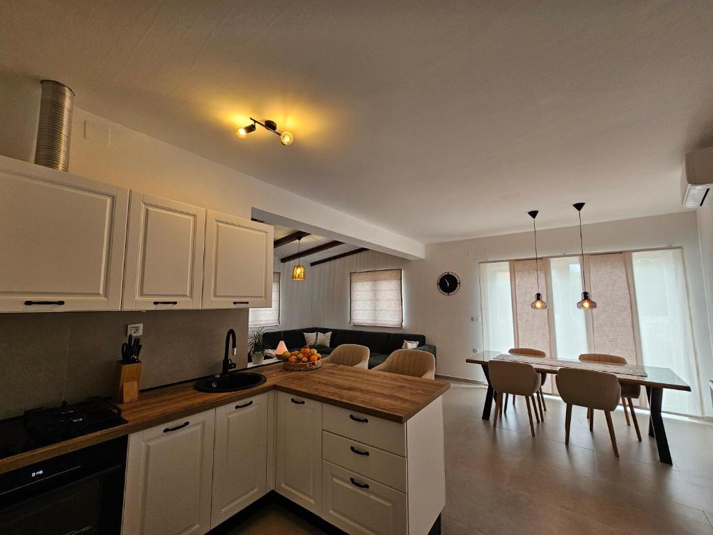 Apartment Una is located in Murter, in a great location just a few minutes walk from the center. It is located in a quiet street, ideal for a relaxing vacation, and at the same time close to restaurants, shops and all important amenities. This spacious apartment offers a fully equipped kitchen with dining area, living room, two comfortable bedrooms and a modern bathroom. Guests can also enjoy a large private terrace perfect for morning coffee or evening socializing. The apartment is air-conditioned, equipped with free WiFi, a flat-screen TV and all necessary household appliances for a longer or shorter stay. Private parking is also provided within the property. Thanks to the proximity of the famous Murter beaches, clear sea and charming old town, Apartment Una is an excellent choice for families, friends and anyone who wants a carefree vacation on Murter.