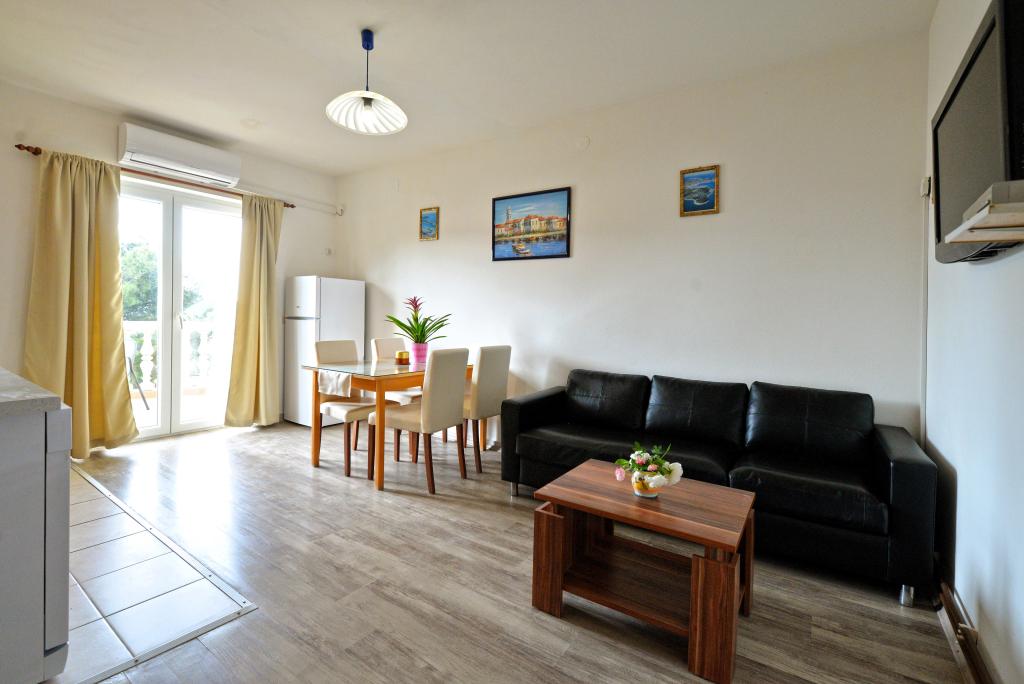 For your perfect vacation we offer you six beautifully decorated and fully equipped apartments (air conditioning, wi-fi, satellite TV free of charge) with one / two/ three bedrooms, kitchen, bathroom, living room and of course the inevitable large terrace, which offers a beautiful view of the sea and the Murter archipelago. The facility is located in a quiet part of town, in a cul-de-sac so traffic is kept to a minimum, and is therefore ideal for guests looking for peace and quiet, and for families with children. A large outdoor grill is available for barbecue lovers. Covered parking places for ten cars are in front of the house. Within 10 minutes walk there is a beautiful sandy beach Slanica, distance from the town center is about 600 m where there are shops, restaurants, caffe bars and where the intense summer life is full of events. Our apartments are desirable because of the beautiful view, location and comfort, but also because of our open hearts and hospitality. Welcome!