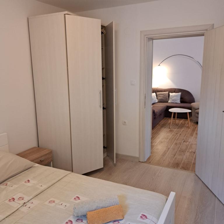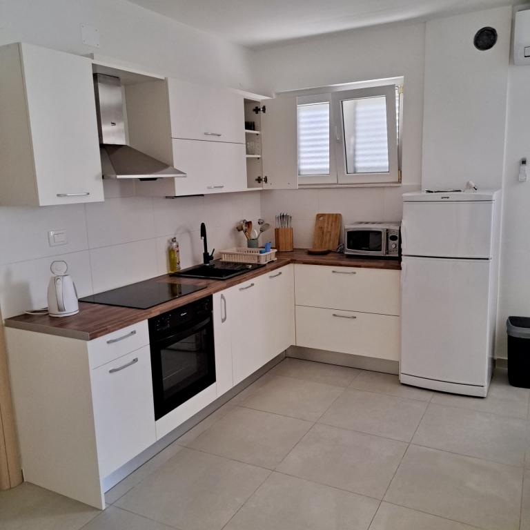 Fully equipped apartments in a quiet part of Murter. The center and the first beach are only 5 minutes walk away. For more detailed offers, please contact us via the mobile phone indicated in the ad!