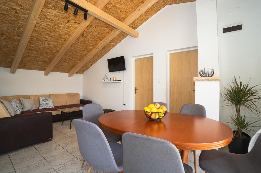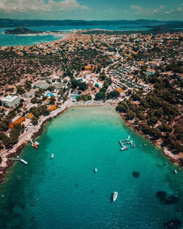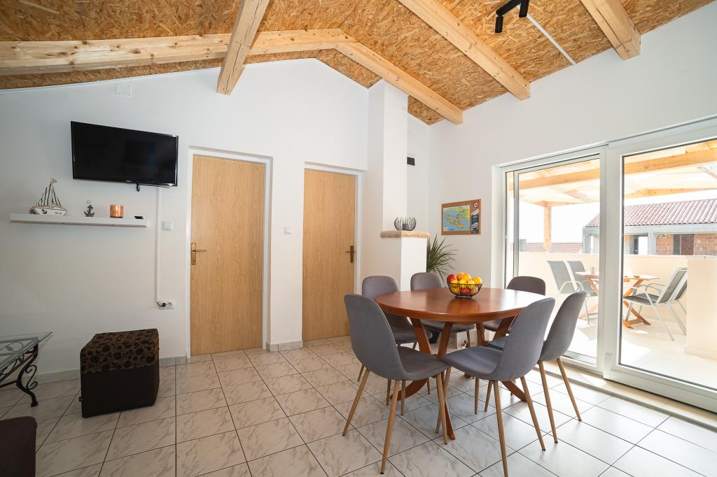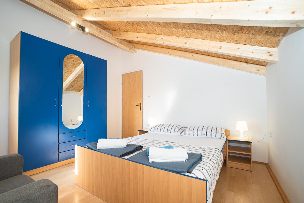 We offer comfortable apartments for 4 to 6 people. Each apartment has a fully equipped kitchen, bathroom, living room, 2 bedrooms and a private balcony. At your disposal is a large yard with garden, barbecue, table and chairs and storage for bicycles or strollers. The apartments are only 150 meters from one of the most beautiful beaches on the Adriatic. In Murter you can find everything you need for a pleasant vacation. There are many restaurants and cafes, a couple of supermarkets, bakeries, butchers, markets, clinics, pharmacies, post office, bank, ATMs, gas station, church, cinema, marina, diving clubs, sports fields and playgrounds for children. You can rent a boat, scooter, moped or bicycle. Boat trips to the Kornati National Park are also on offer, and the Krka National Park is nearby. We also recommend several lookouts with a beautiful view of the place, the surrounding islands and the Kornati. Apartments "Hojsak" are located at the entrance to Murter. They are located between the beach "Čigrađa", the hill "Raduč" and the old part of Murter, "Selo".