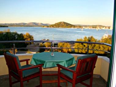 Murter, air conditioned apartments 2-4 persons, first row to the sea, each with its terrace or balcony situated in a large yard with Mediterranean garden in a quiet part of town. Parking is provided.