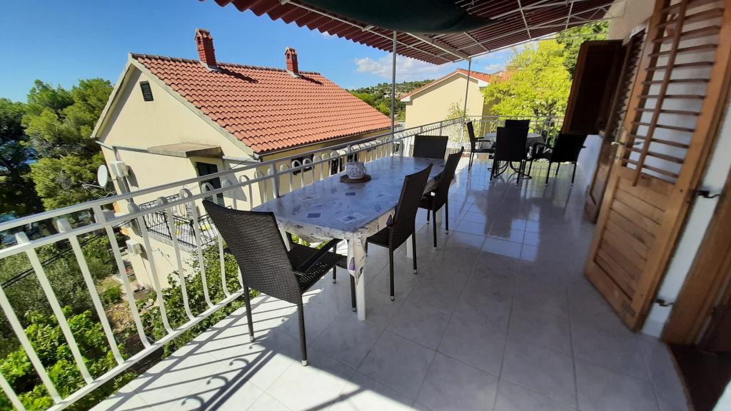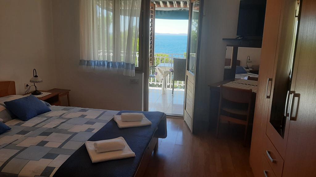 Very polite and nice owner. Clean, spacious apartment with a very large and shaded terrace overlooking the sea. Fully equipped kitchen and rooms, shaded parking spaces for cars. Beaches and konobas very close. A place worth recommending for a quiet holiday.