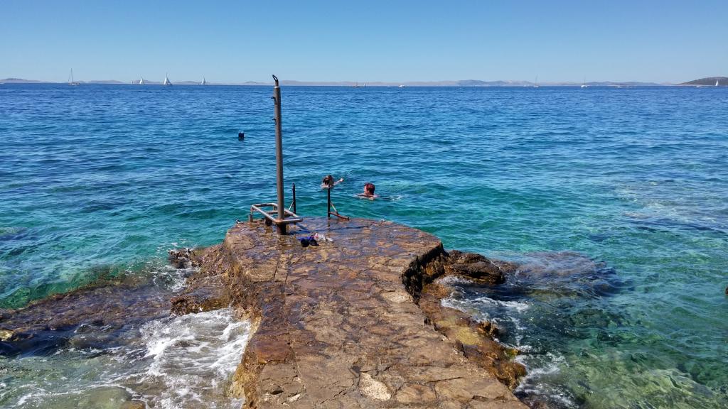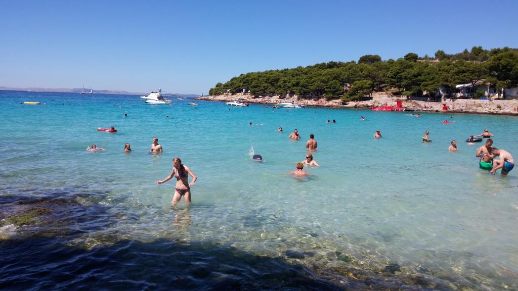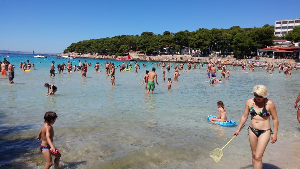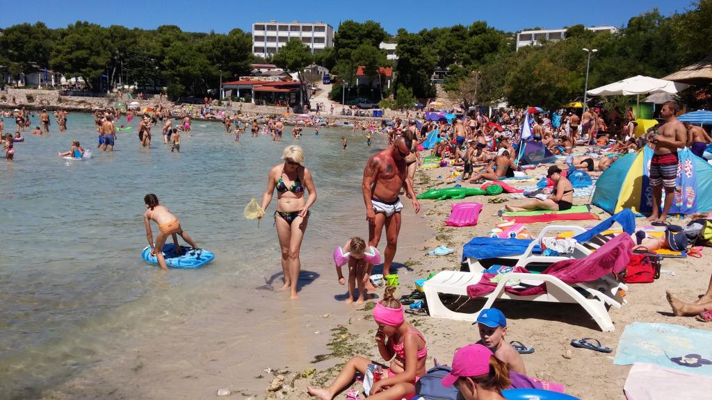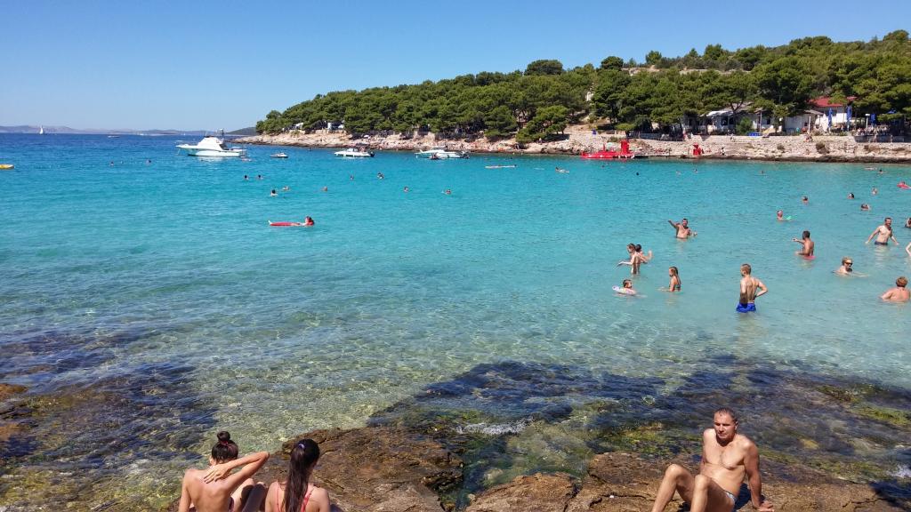 The apartment with a beautiful sea view is located in an excellent location only 40 meters from the sea with secured two private parking places included in the price. The apartment has 3 bedrooms where 6 adults can sleep 2 extra beds for two persons. The apartment is equipped with TV, air conditioning, free wifi, oven and grill. Balcony / terrace area of 20m2 with beautiful sea view, sunset, Kornati and lighthouse. It is only a 4-minute walk to the beach of Slanica, a 12-minute walk to the Podvršci beach, 15 minutes walk to the Čigrađa beach and 5 minutes walk to the shops. The town center is 20 minutes' walk away.