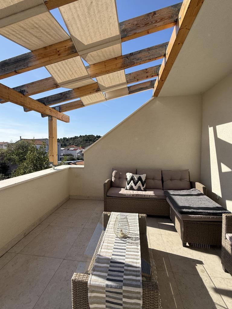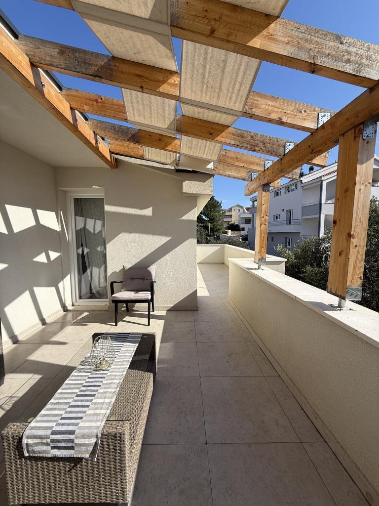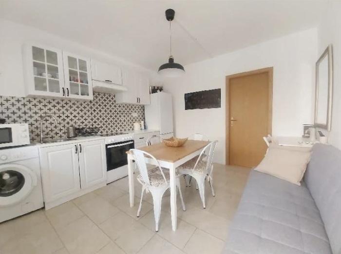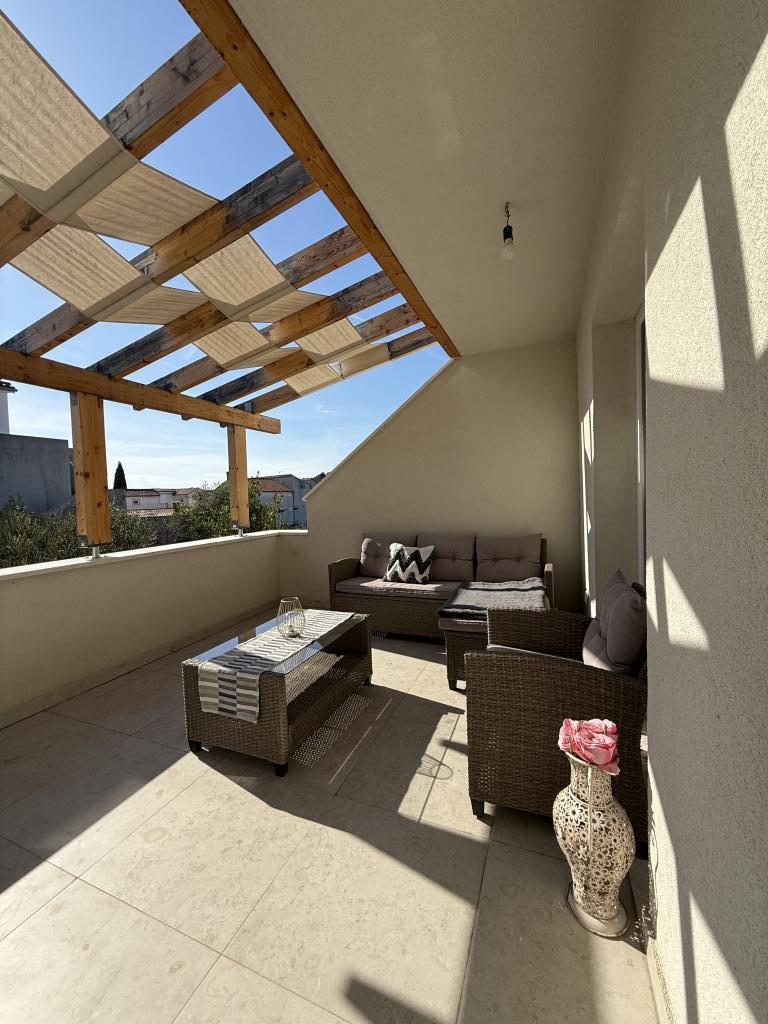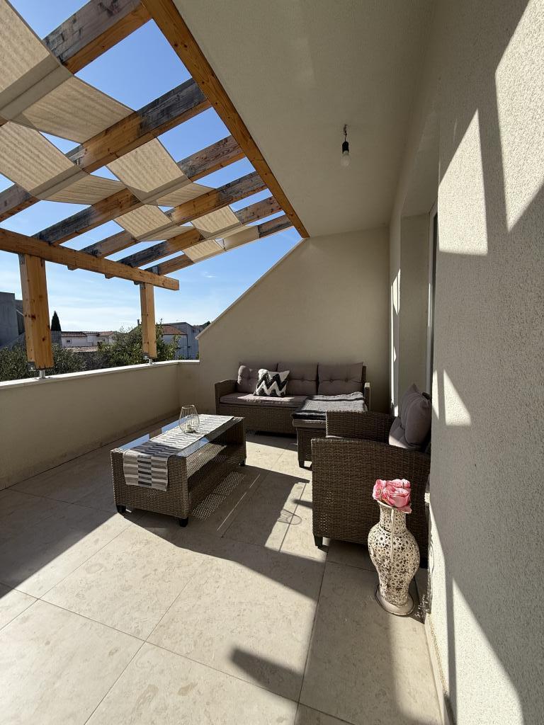 Studio apartment with a terrace of 12m2. The apartment is designed for 2 people. Large double bed, fully equipped kitchen, dining table, bathroom. Terrace and dining table. Secured parking space in front of the apartment for one vehicle. Close to the beach. The apartment is a 5-minute walk to the beach Slanica and a 7-minute walk to the center of Murter.