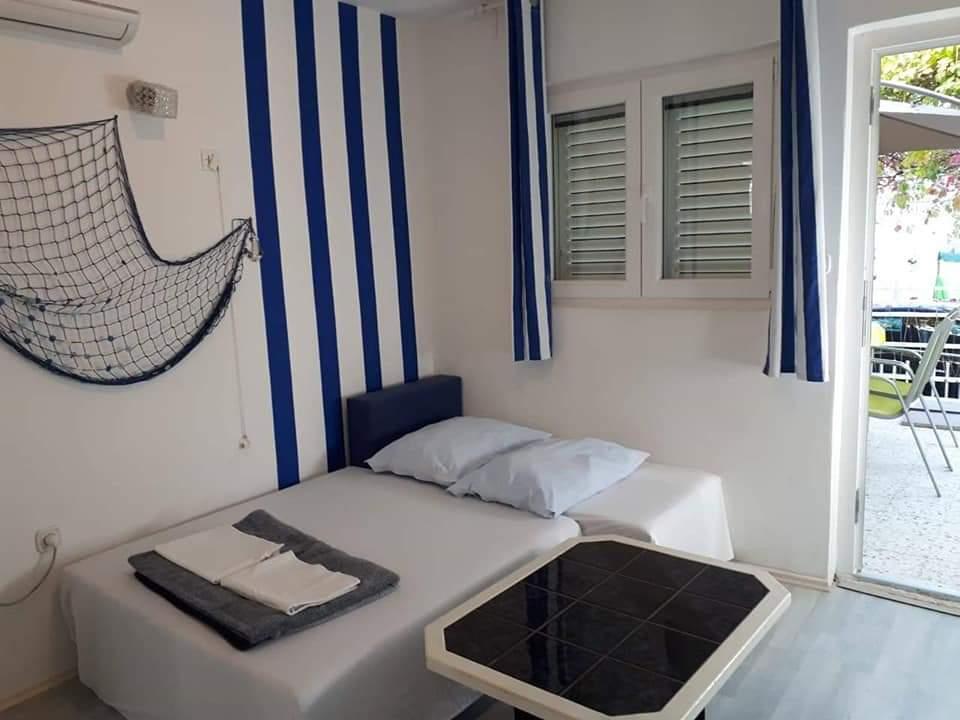 Completely and modernly furnished apartments, just 440m from the sandy beach of Slanice. The second beach of Luka is 400m away so two beaches are 5 minutes away from the apartments. All apartments are air-conditioned and all apartments have internet access. Each apartment has its own terrace, secured parking, barbecue facilities. Absolutely everything is located near the apartments 100-400m (super market, playground for children, restaurants, cafes, pharmacy, pastry shop, bakery, pizzeria, rent a boat, rent a bike, diving center, water slides, beach volleyball, tennis courts We have a lot of beaches and coves on the island of Murter where you can swim and have fun in peace with your pets The listed prices are per apartment per night, not per person Apartments 2 1 are for a maximum of 3 persons, apartments 2 2 are adapted for 4 persons, while apartments 4 2 are adjoined for 6 persons.