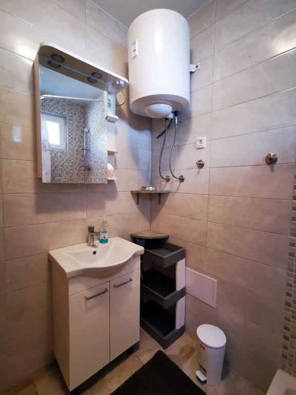 Fully and modernly furnished apartments in a quiet area of the island of Murter, located 2 row to the sea. The property is located a 5-minute walk from the main beach of Slanica and a 20-minute walk to the center. Below the house is a rocky beach but also a bay with small pebbles for children. The Kornati National Park is overlooking the property's terrace.