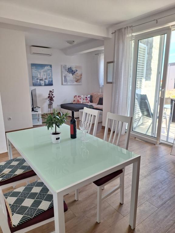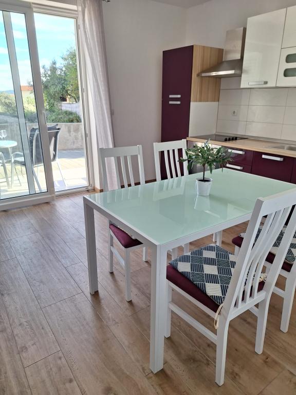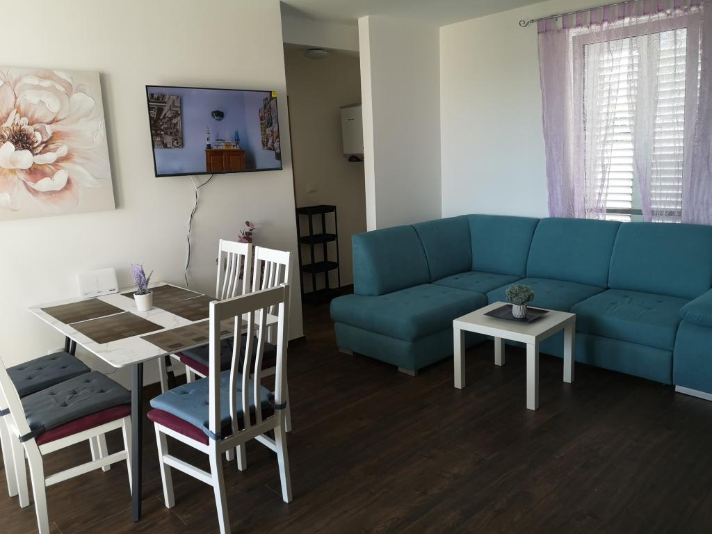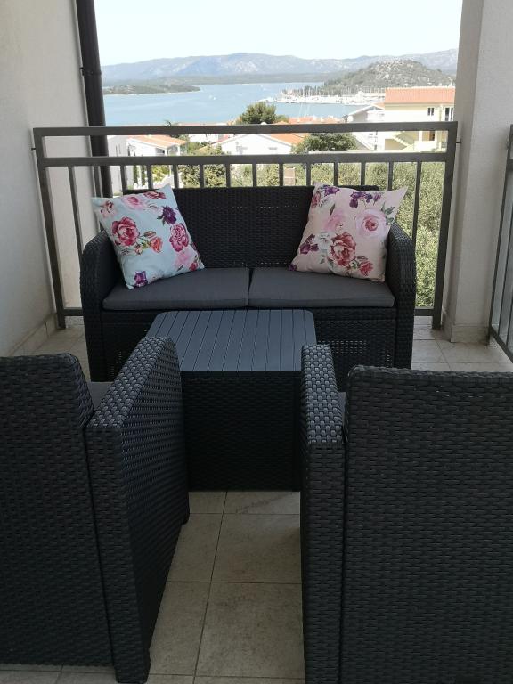 Villa Tea consists of six accommodation units. The apartments have one or two bedrooms, a bathroom, a living room with a kitchen and a dining room, and a terrace with a beautiful view of the sea. The apartments are fully equipped. Each apartment has its own parking space, free Wi-Fi and air conditioning. The nearest sandy beach Slanica is only five minutes away from the property. If, on the other hand, you like to take a walk along the path over which the pine branches hang and make your walk pleasant, about ten minutes from Slanica is the Podvrška beach with the beautiful turquoise color of the sea. There is a shop nearby, and the city center is only 15 minutes away. If you are able, our warm recommendation is to visit the national parks of Kornati and the Krka River, the canyon of the Zrmanja River, and the nature parks of Lake Vrana and Telaščica.
