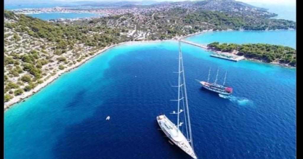 The property is located in an olive grove 100 m from the sea, above the beach, in a secluded area. In addition to beautiful nature, a divine view of Kornati and sunsets, you will experience a break from everyday life in peace and quiet. The house is newly decorated, and there is everything you need to enjoy your vacation. In addition to being located right next to one of the most beautiful beaches on the Mediterranean, there is another beach, a market, a children's playground, restaurants, cafe bars, a pharmacy in the vicinity of 400 m...