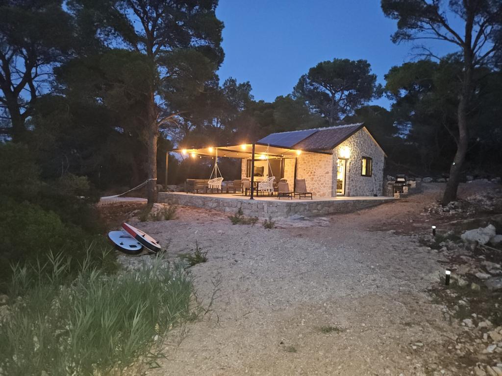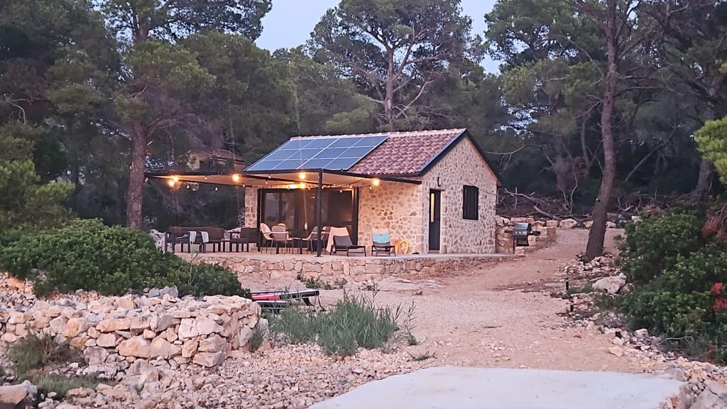 The fisherman's house has solar panels that generate 220 W of electricity. The water is good for showering (from the water supply or rainwater), heated by the sun. There is enough water if used rationally. The house is fully equipped with 220V electricity, air conditioning, 2 TVs, stove, oven, hot water boiler, kitchen with hood, all kitchen electrical appliances, bed linen and towels, outdoor grill, outdoor dining table, lounge set, deck chairs, swings.... Transfer is included in the price, and guarded, covered parking is provided by the owner in Murter. The house is located in a secluded area, only 5 minutes by small boat, kayak or SUP away from the center of Murter and all the amenities of the urban tourist resort. Guests are offered to rent a small boat with a 6hp pentathlon, rental price per day 30 euros. Guests are offered to rent a Ranieri Cayman 28 inflatable boat, sport touring, with 2x250 HP Mercury, rental price on request.