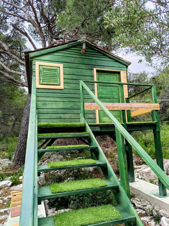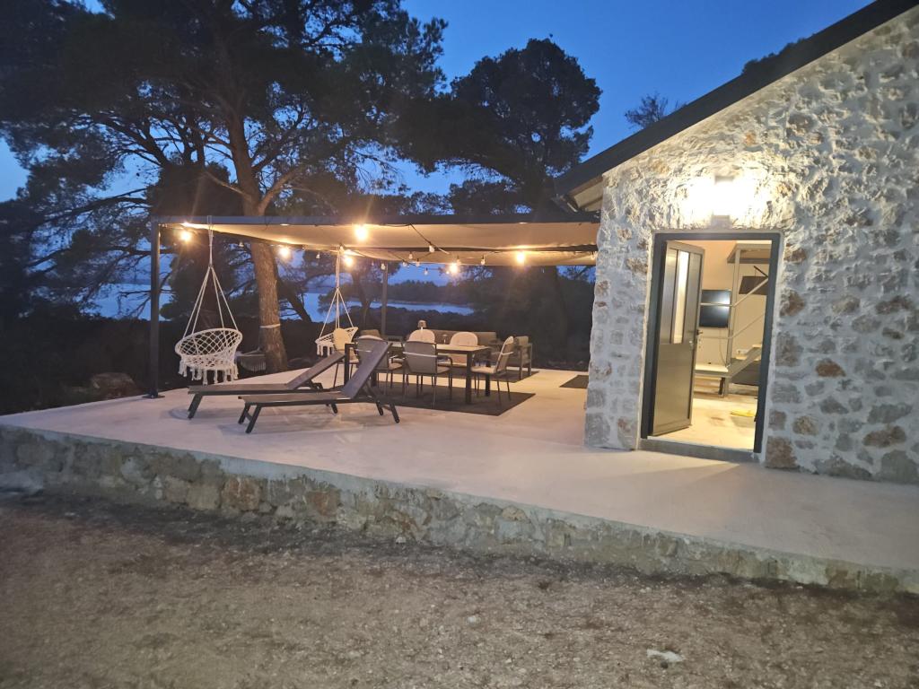 Zen Resort is located on the islet of Mali Vinik in the Hramina bay near the center of Murter, which can be reached by boat, the ride takes 5 minutes. The accommodation consists of two buildings, a stone house with an area of 40m2 and an auxiliary wooden (thermally insulated) "tree house", with an area of 9m2, which is used as a bedroom for two people (additional charge - 60 euros per night). The wooden house is equipped with 220V electricity, smart TV, BT speaker, fan, and air conditioning. The main, stone house consists of a bedroom, located on the gallery with a smart TV that can sleep 2 adults. The living room has a sofa bed, which can be used as a bed for two people, equipped with lighting, TV, sound bar. The bathroom is equipped with a toilet, sink and a spacious walk-in shower. The balcony/terrace area is 40m2. The fisherman's house is equipped with two TVs, IPtv, AC heating/cooling, wifi. Parking is provided and included in the price. The fisherman's house has its own boat dock.