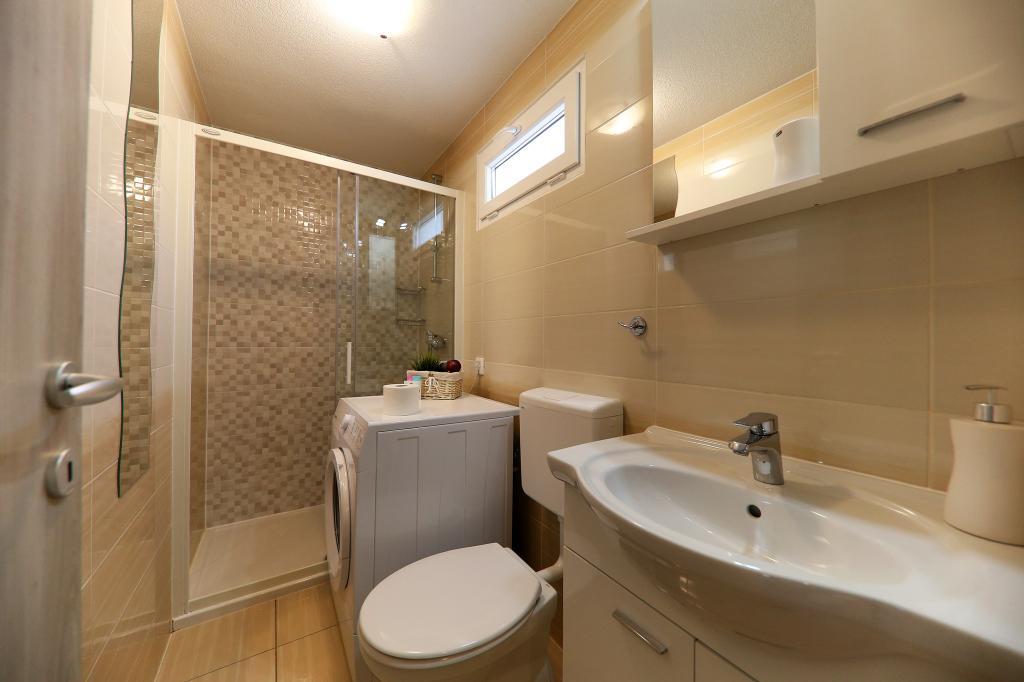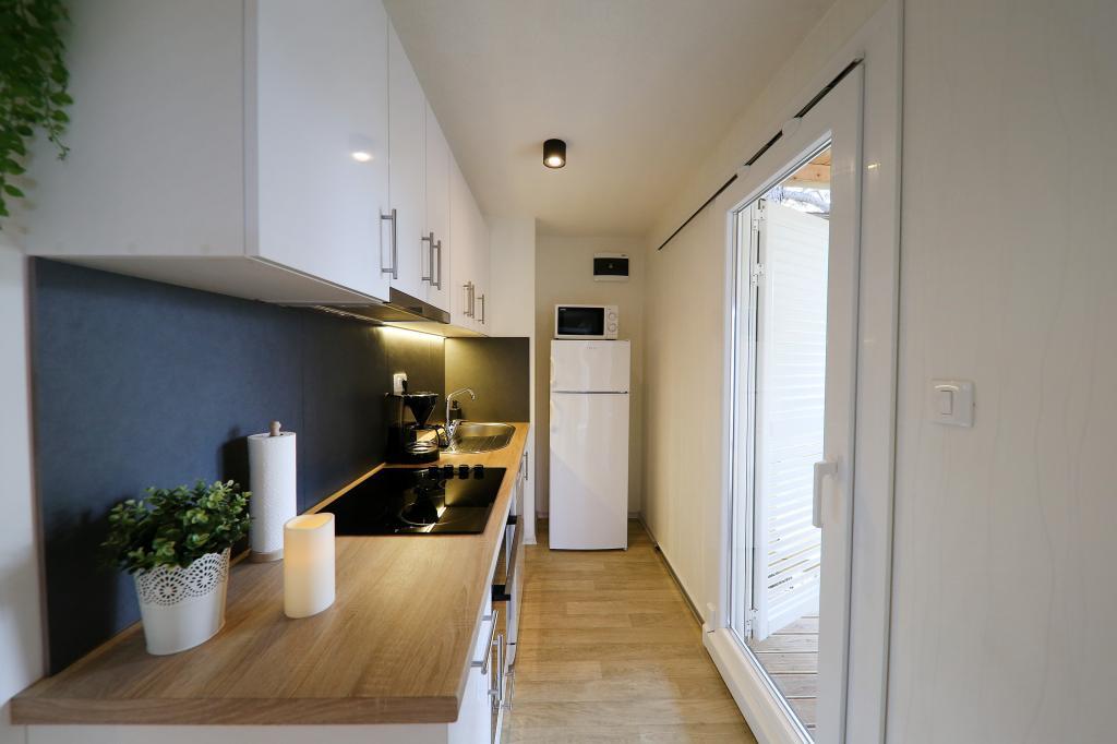 Mobile homes in the Lostura camp are located in the immediate vicinity of one of the most beautiful beaches on the Adriatic, Slanica!. The mobile home is located only 30m from the sea and 200m from the sandy beach Slanica. The house has a 40m2 terrace of 20m2. The house has two bedrooms, one with a double bed (160x200), and a room with two single beds (80x200). In the living room there is a corner sofa that can be used as an extra bed for one adult or two small children. The kitchen is fully equipped with all necessary appliances (fridge with freezer, oven, microwave, dishwasher, kettle, coffee maker). Bathroom with shower, washing machine, hairdryer, bathroom accessories. In the living room there is a TV with satellite receiver, free internet, air conditioning for cooling and heating. On the terrace there is a dining table with chairs and a deck chair for sunbathing and enjoying the beautiful view of the Kornati Islands and Slanica beach. Parking space is located in the immediate vicinity of the house.