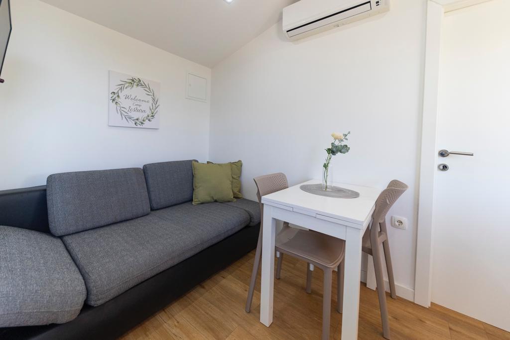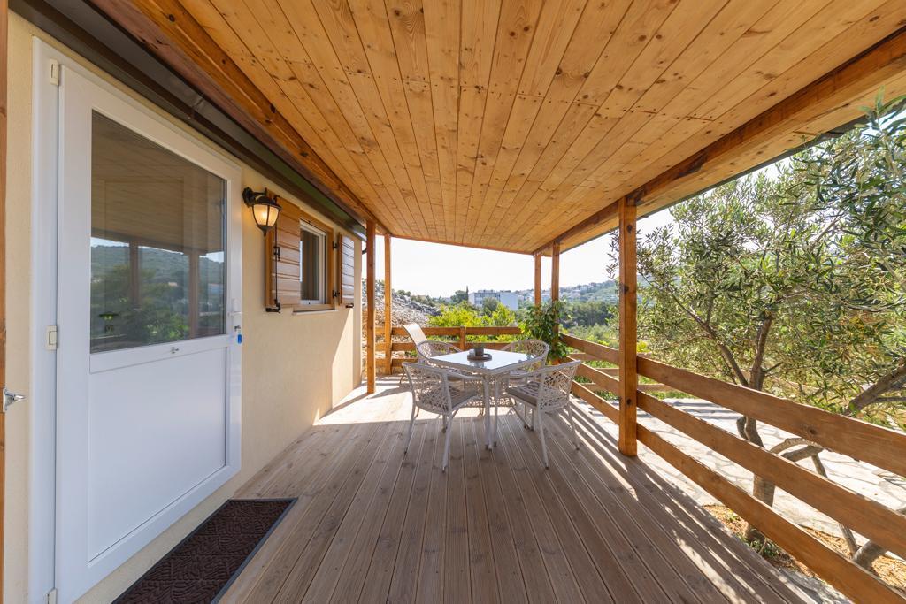 Mobile homes in the Lostura camp are located in the immediate vicinity of one of the most beautiful beaches on the Adriatic, Slanica!. The mobile home is located only 30m from the sea and 200m from the sandy beach Slanica. The house has a 40m2 terrace of 20m2. The house has two bedrooms, one with a double bed (160x200), and a room with two single beds (80x200). In the living room there is a corner sofa that can be used as an extra bed for one adult or two small children. The kitchen is fully equipped with all necessary appliances (fridge with freezer, oven, microwave, dishwasher, kettle, coffee maker). Bathroom with shower, washing machine, hairdryer, bathroom accessories. In the living room there is a TV with satellite receiver, free internet, air conditioning for cooling and heating. On the terrace there is a dining table with chairs and a deck chair for sunbathing and enjoying the beautiful view of the Kornati Islands and Slanica beach. Parking space is located in the immediate vicinity of the house.