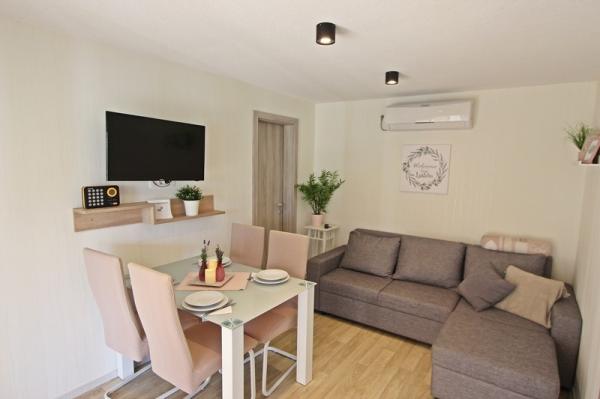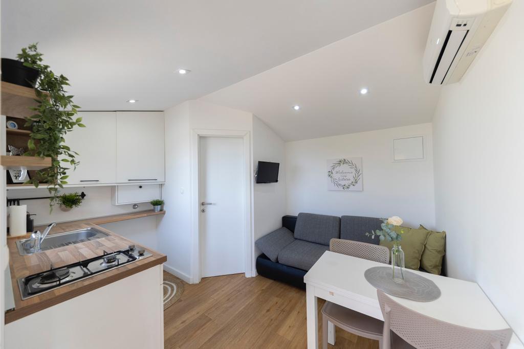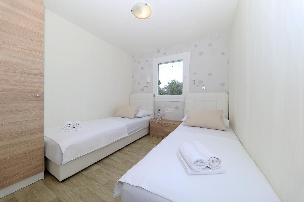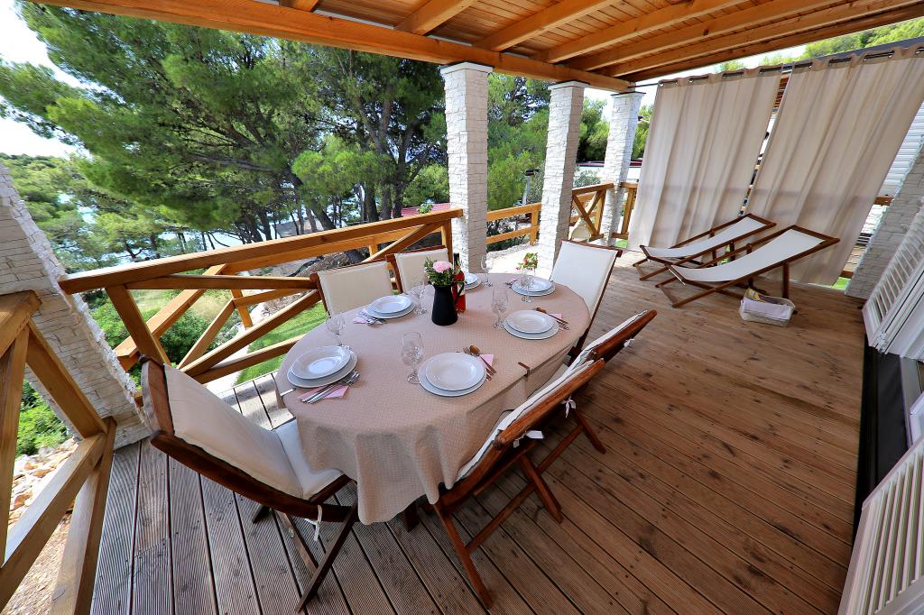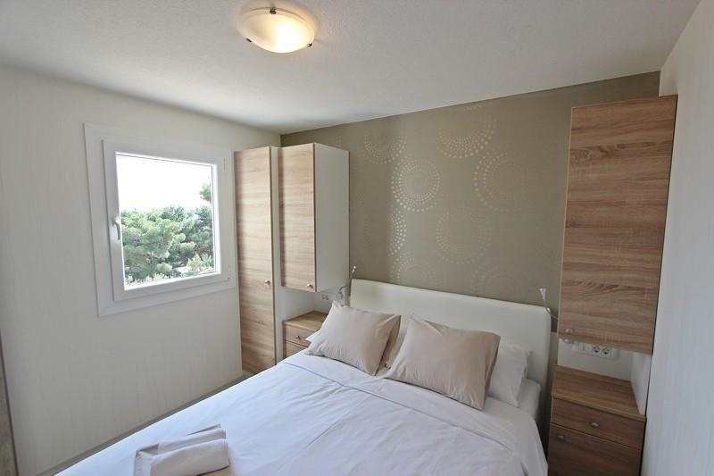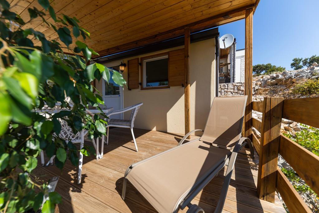 Mobile homes in the Campsite Lostura are located near one of the most beautiful beaches in the Adriatic, Slanice !. The mobile home is located only 30m from the sea and 200m from the sandy beach Slanica. The house has 40m2 20m2 terrace. In the house there are two bedrooms, one with a double bed (160x200), and a room with two separate beds (80x200). In the living room is an angular set which can be used as an extra bed for one adult or two young children. The kitchen is fully equipped with all the necessary appliances (fridge with freezer, oven, microwave, dishwasher, kettle, kettle, coffee maker). Bathroom with shower, washing machine, hair dryer, toiletries. In the living room there is a TV with satellite receiver, free internet, air conditioning and heating. On the terrace there is a dining table with chairs and a sun lounger and a wonderful view of the Kornati islands and the beach of Slanica. Parking place is located near the house