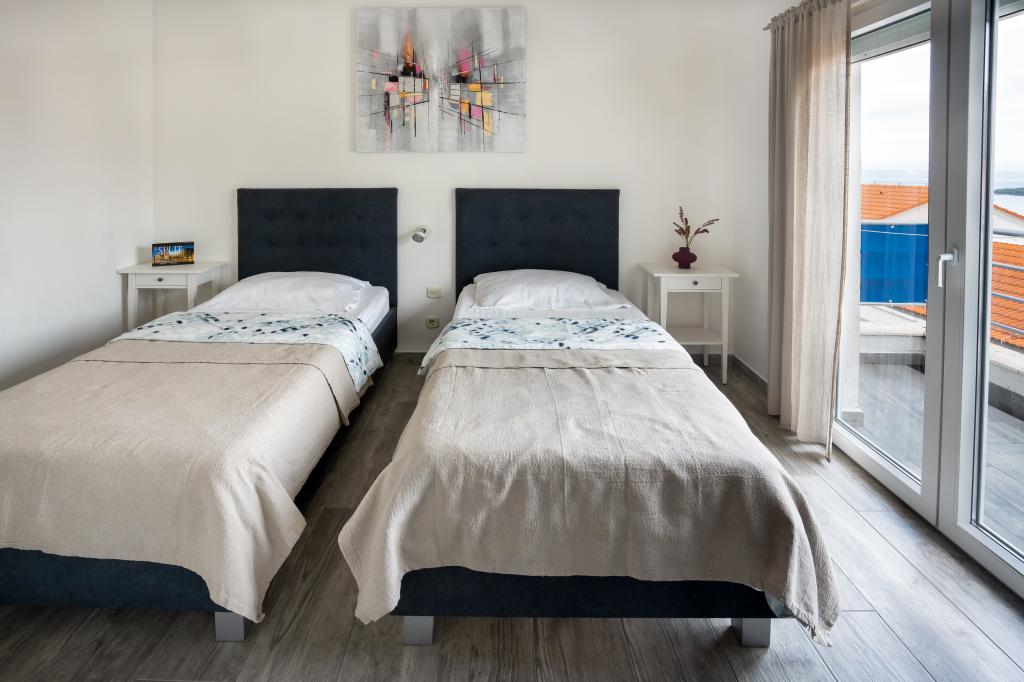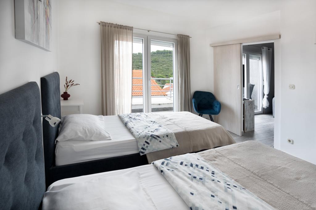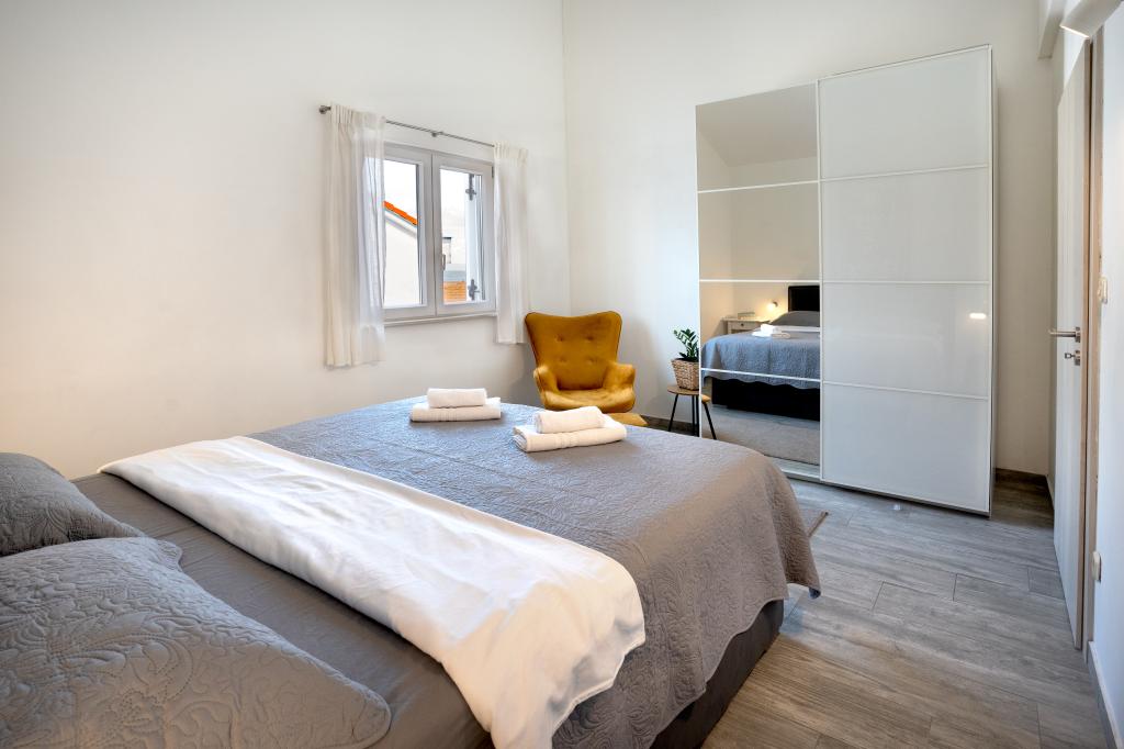 The apartment is located in the bay Necujam on the island of Solta. The apartment is new, consists of a room with a double bed, a room with two single beds, living room with sofa bed, bathroom and is fully equipped with all the usual and necessary (bed linen, towels, dishes, iron, washing machine, microwave, safe, TV, DVD, WI-FI, air conditioning, barbecue). The building is located in the second row to the sea, the view from the balcony is to the sea, parking space is provided. The store is located near about 100 meters and a pebble beach, suitable for children and adults. Next to the beach is a volleyball court, table tennis. The price includes the use of air conditioning. By choosing our apartment you will truly get the accommodation that is also shown on this website.