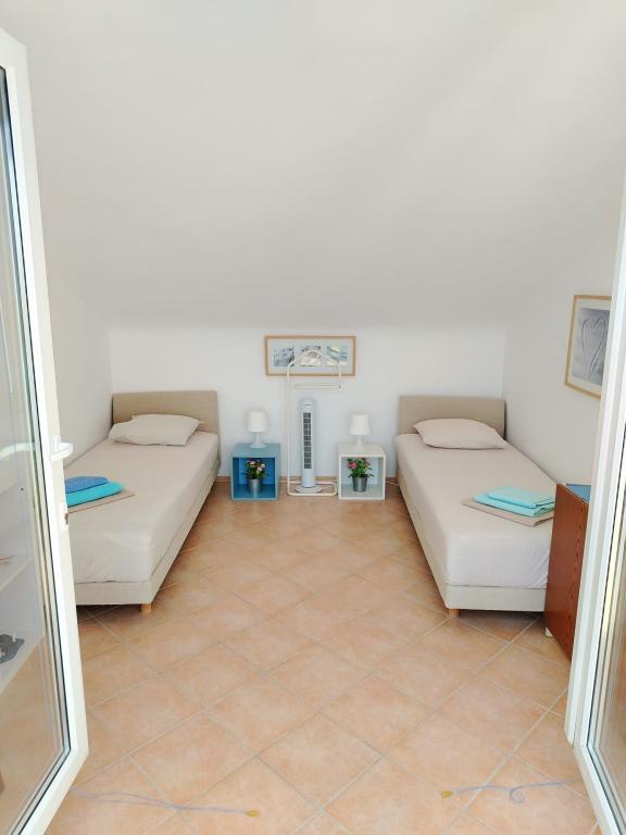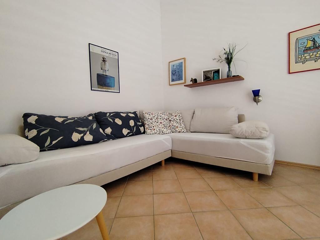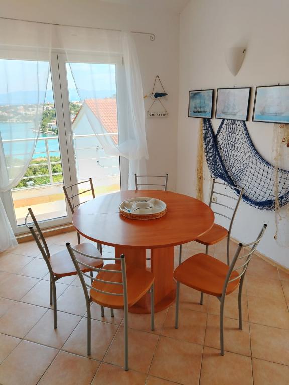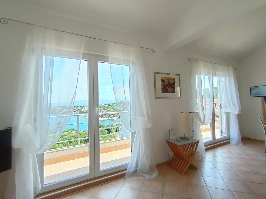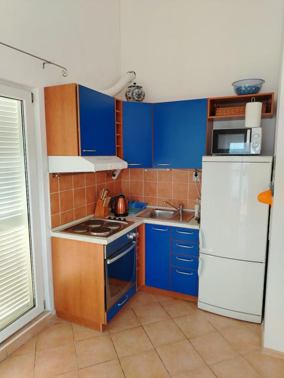 The apartment has everything a person needs on vacation, and even more. It is well equipped (air conditioning, WiFi, washing machine, hair dryer, pots and pans, large fridge with freezer, enough towels and bed linen, drying rack, electric grill...)! The view from the terrace is divine. The apartment is in a quiet location and decently decorated with sea details and pictures. We enjoyed!