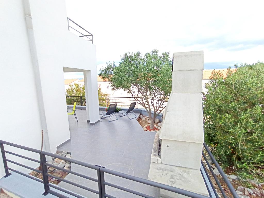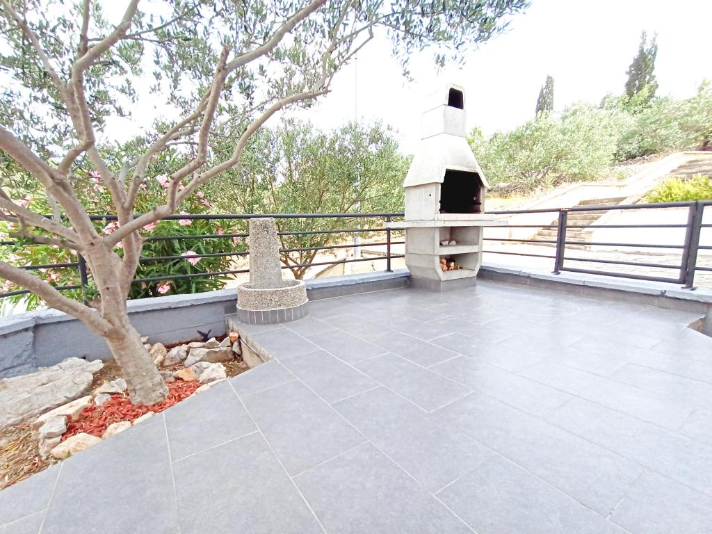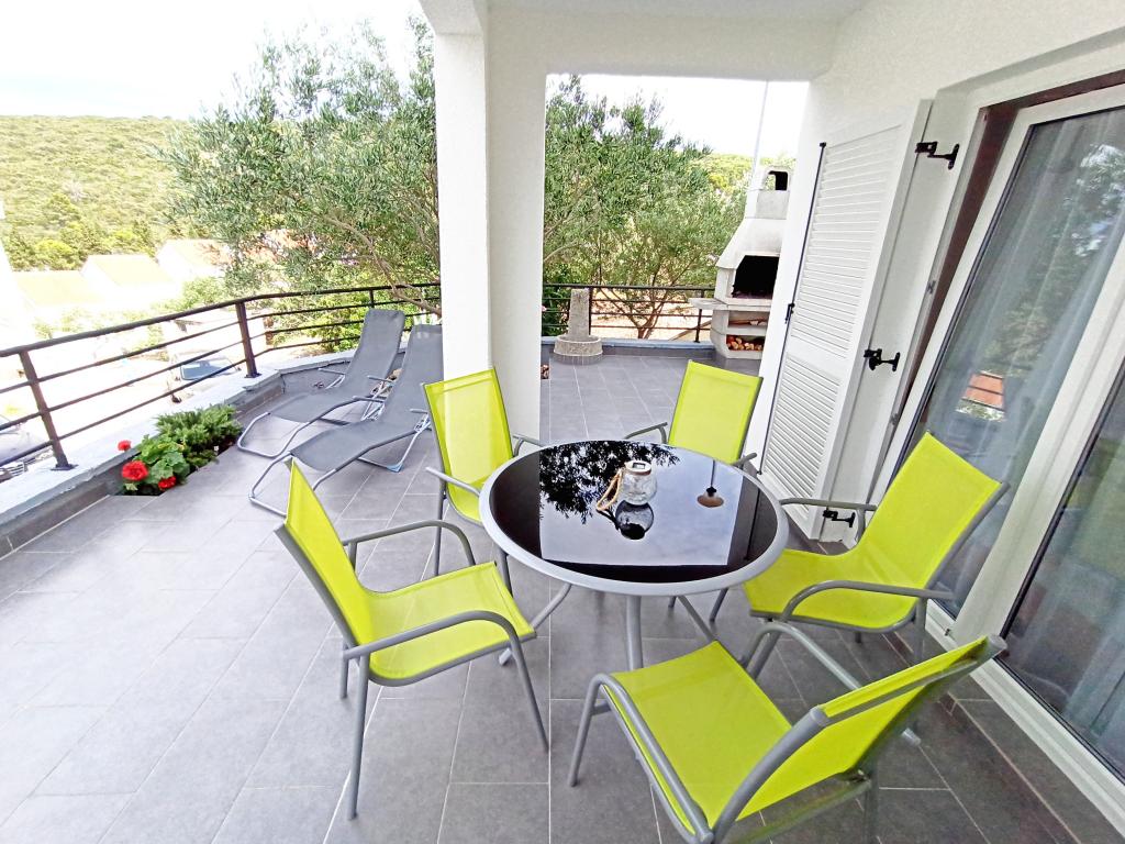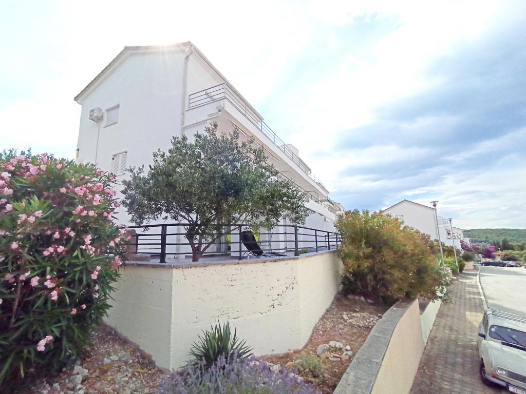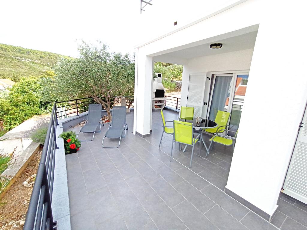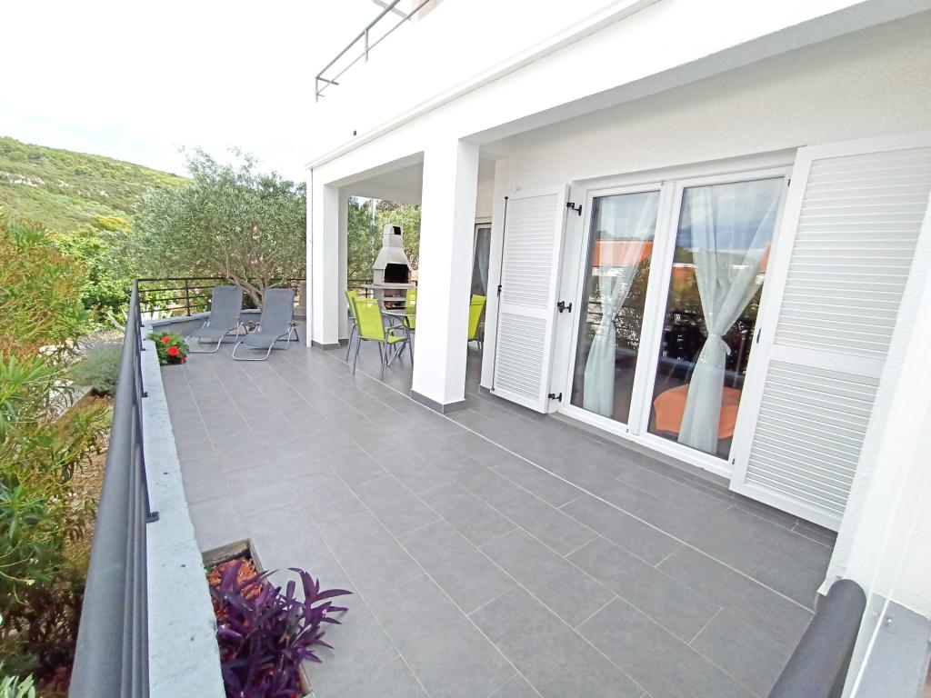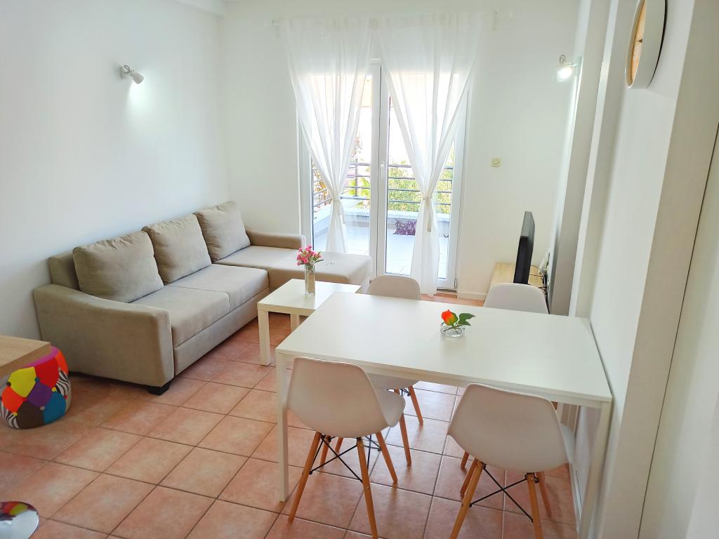 The fully and modernly equipped apartment is located on the high ground floor of a small building. The apartment consists of: Kitchen: equipped with everything you need for a comfortable stay: - Living room with air conditioning and LCD TV. The living room also has a sofa, which can be converted into a comfortable bed if necessary. - Completely new kitchen, fully equipped (contains a hob, dishwasher, oven, complete dishes, microwave). It consists of 2 bedrooms: Room 1: consists of one double bed and one single bed Room 2: consists of 2 single beds WC-shower, with all sanitary elements and a washing machine The specialty of the apartment is the large terrace on the south side where you can enjoy it all day long. The terrace has an outdoor dining set and a barbecue. There is a large olive tree on the terrace that provides natural shade all day long. Right in front of the apartment there is its own private parking for a car.