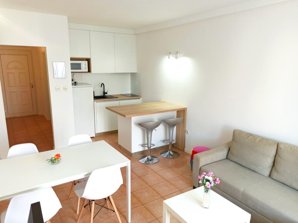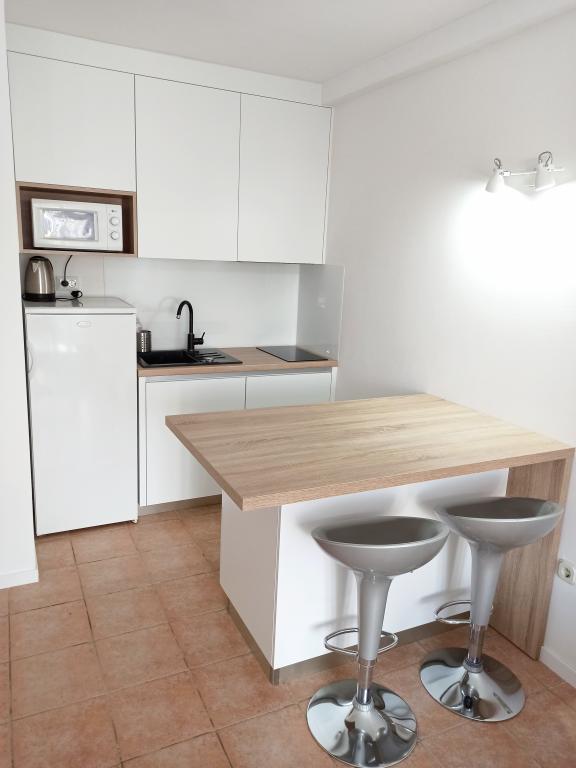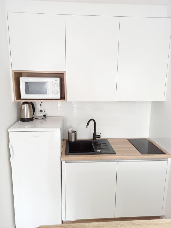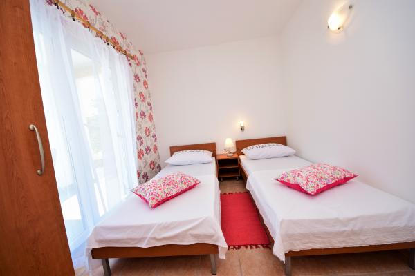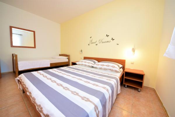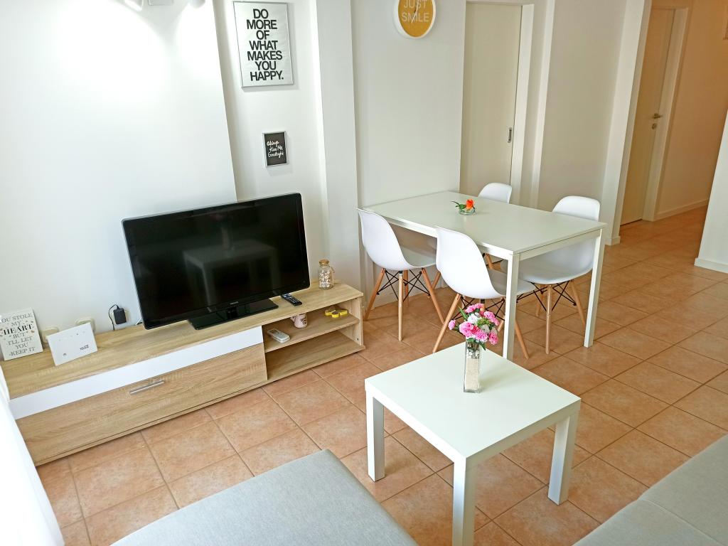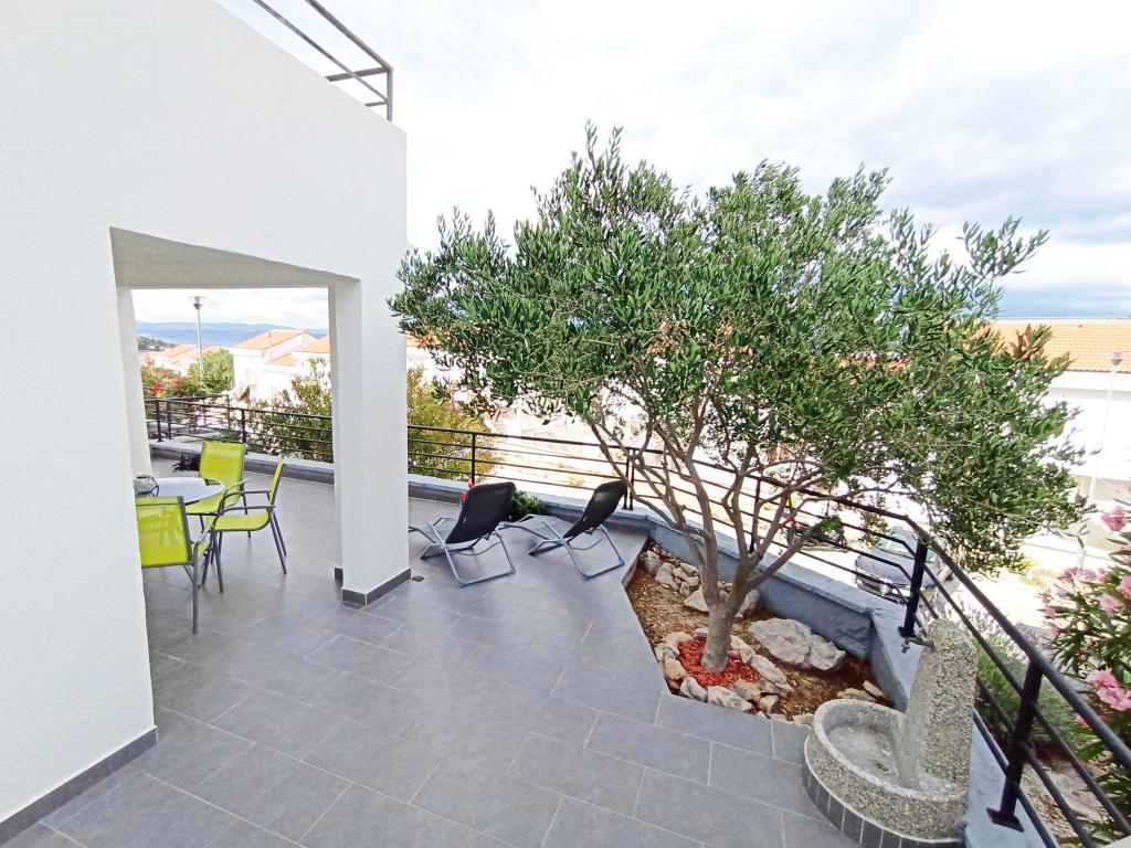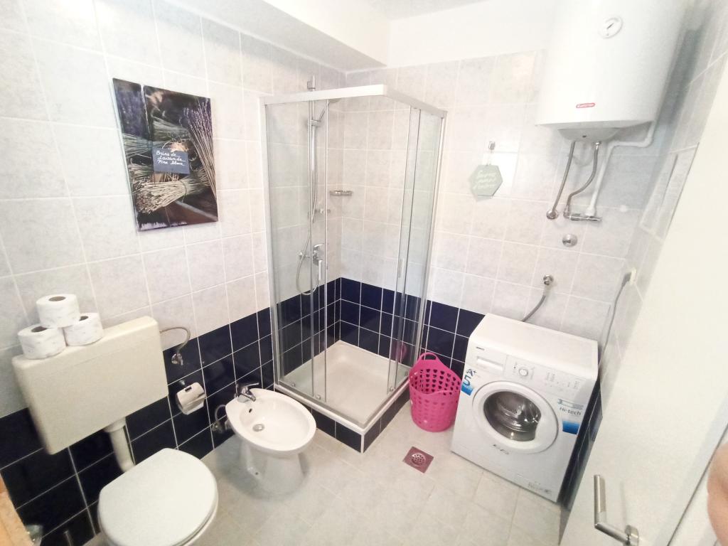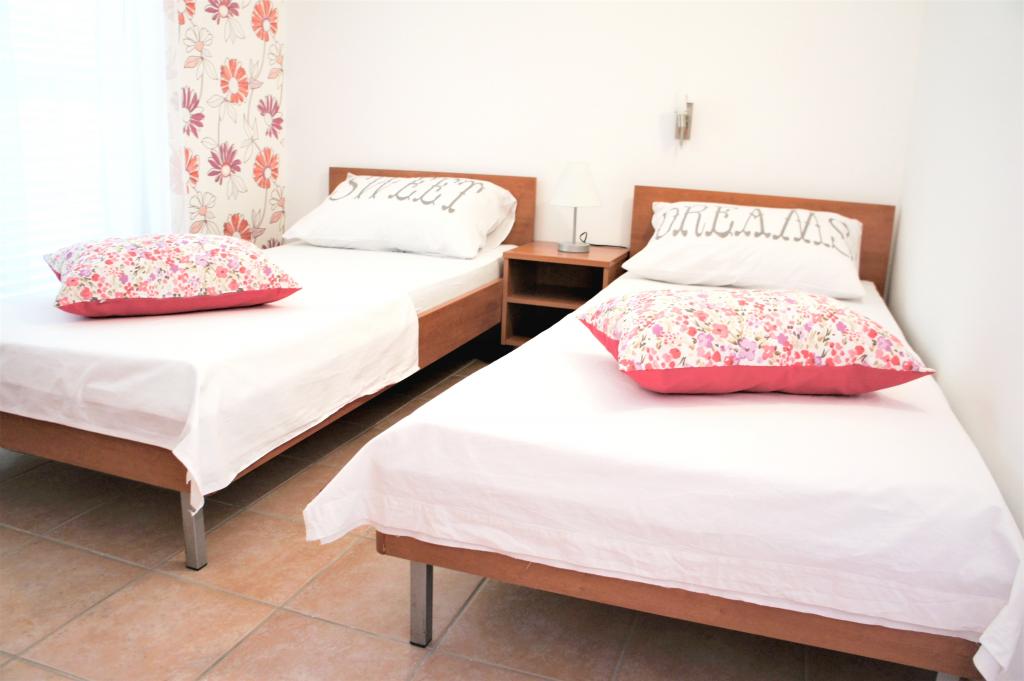 The fully and modernly equipped apartment is located on the high ground floor of a small building. The apartment consists of: Kitchen: equipped with everything you need for a comfortable stay: - Living room with air conditioning and LCD TV. The living room also has a sofa, which can be converted into a comfortable bed if necessary. - Completely new kitchen, fully equipped (contains a hob, dishwasher, oven, complete dishes, microwave). It consists of 2 bedrooms: Room 1: consists of one double bed and one single bed Room 2: consists of 2 single beds WC-shower, with all sanitary elements and a washing machine The specialty of the apartment is the large terrace on the south side where you can enjoy it all day long. The terrace has an outdoor dining set and a barbecue. There is a large olive tree on the terrace that provides natural shade all day long. Right in front of the apartment there is its own private parking for a car.