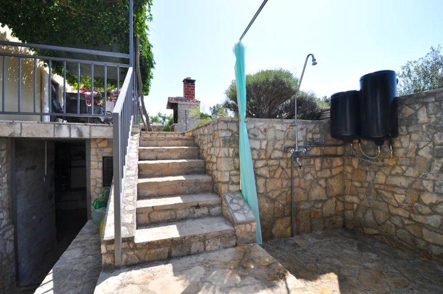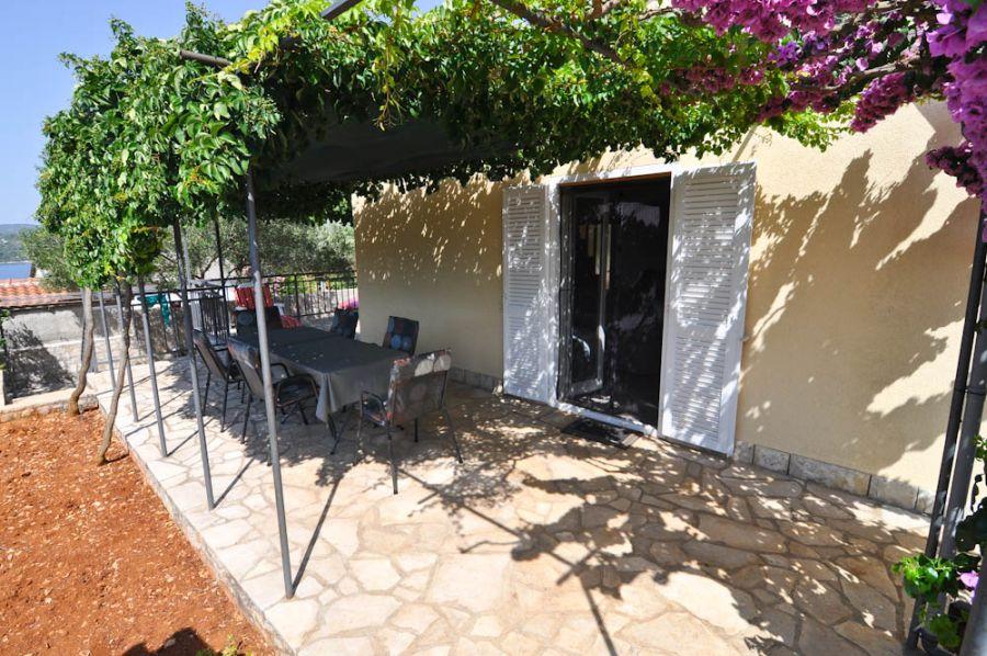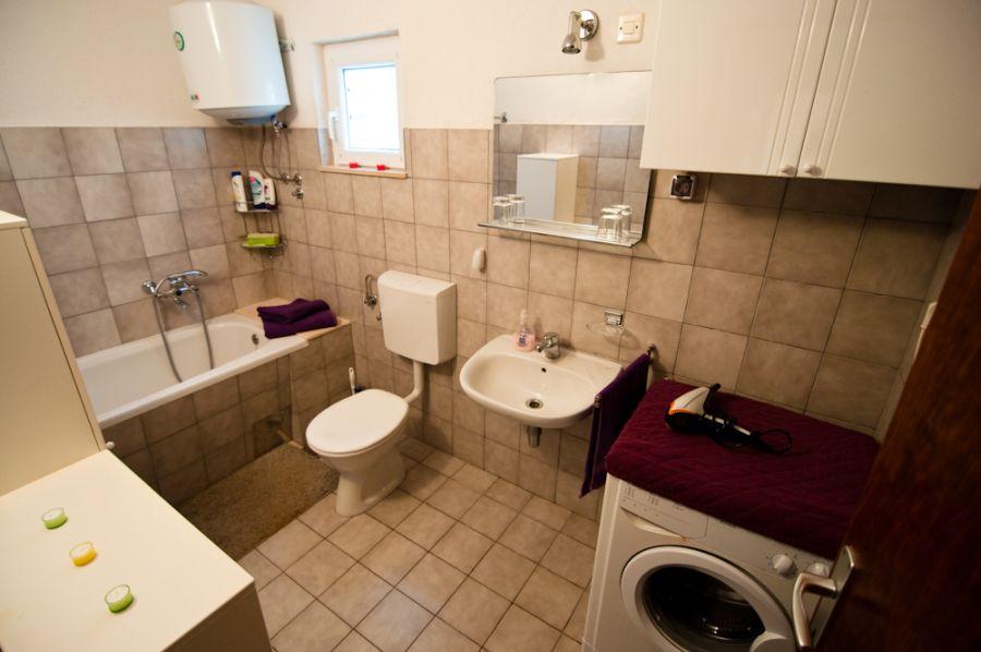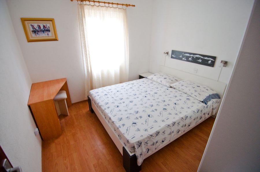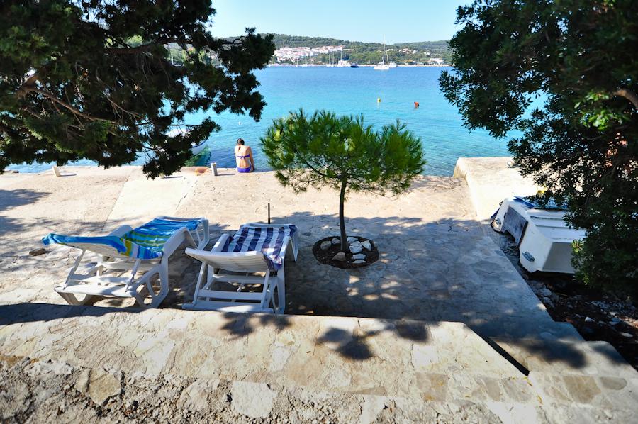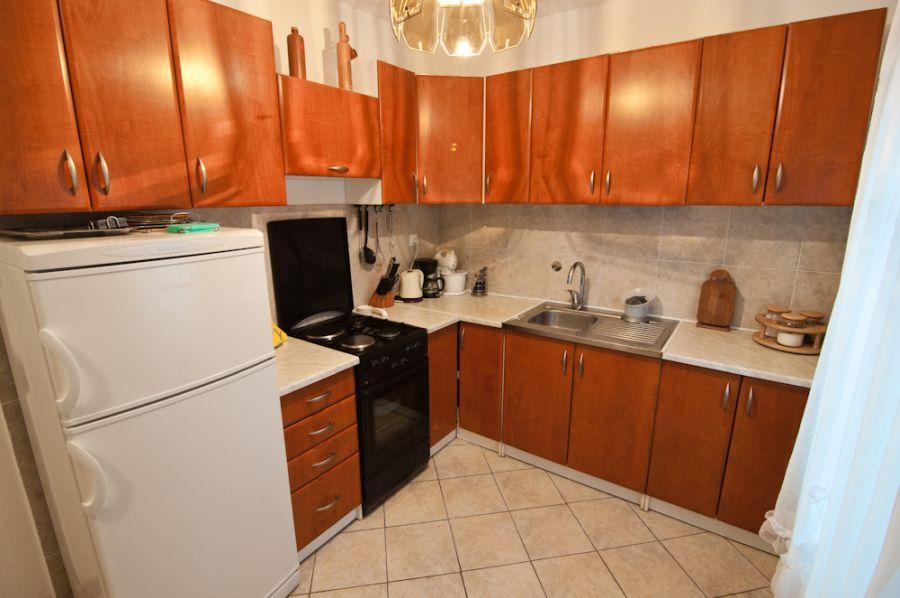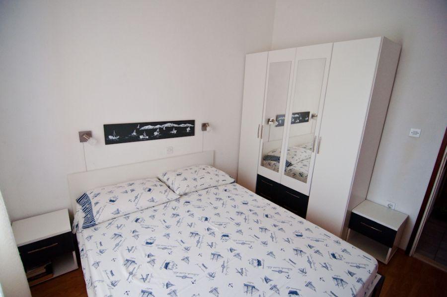 The apartment is fully furnished and equipped. It has approximately 85 m2 and consists of 3 bedrooms, large living room, kitchen and a large terrace with barbecue total area of 30m2. Located on the ground floor in a quiet position. Two rooms are equipped with double beds and one room has two single beds. All rooms are equipped with a wardrobe. The kitchen is fully equipped and functional. The living room is large, airy, with high ceiling and direct access to the terrace. The terrace has views of the sea and nature, in the shade, and with it access to a barbecue and outside shower. The apartment is accessible by car, and parking can accommodate up to 3 cars. The beaches are located 100-150m (concrete and stone), and gravel 800m. Concrete and pebble beach is accessible by car and concrete one can be used for docking with boat.