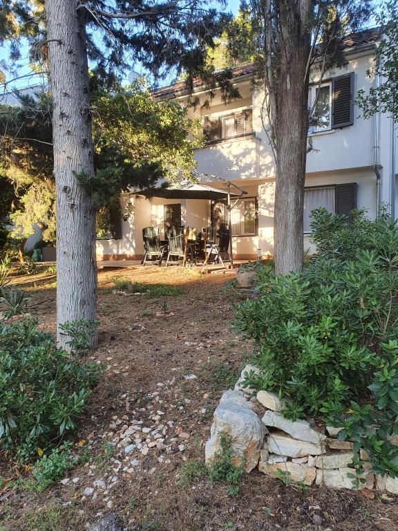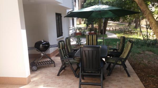 Fully equipped and decorated apartments for a comfortable stay for up to 6 people, located in a pine forest. The apartments are a 3-minute walk from the sea and a beautiful beach that can be reached through a pine forest. The apartments consist of two rooms - one with a double bed and one with two single beds, a living room with a sofa bed and an LCD TV, a dining room (larger apartment - created by adapting two smaller apartments into one large apartment of 60m2), a bathroom, a complete kitchen with appliances such as a kettle, a coffee machine (washing machine and dishes in the larger apartment) and a terrace, with the possibility of using a barbecue. Each of our apartments is equipped with bed linen, towels, kitchen utensils and appliances necessary for your smooth stay. The overall environment (pine forest, proximity and arrangement of the beach and the sea, protection of the promenade from the road) represents an ideal environment for relaxation and a family vacation with small children or a pet.