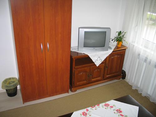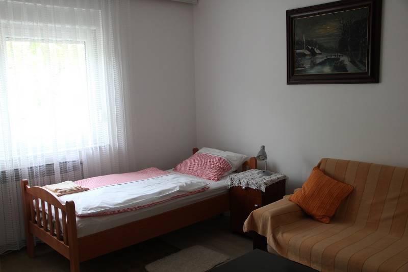 The area of 66m2 is located on the 1st floor of a family house, it has two bedrooms with 2 beds each and a living room with two extra beds. The bathroom is equipped with a bathtub, hair dryer, bidet and sink. The kitchen is equipped as standard with dishes for preparing and serving food and drinks, as well as cutlery in appropriate quantities, refrigerator, freezer 10L. All rooms in the apartment have heating, SatTV in both rooms. Parking is provided.