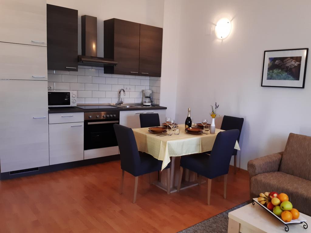 Apartments Bešlagić are modern apartments located in a quiet village Nerezine. The facility is located in a cul-de-sac 100m from the center and 300m from the sea and beaches. The apartments are fully equipped, decorated and air conditioned. Apartment (A6) has a separate entrance. It consists of three bedrooms, hallway, new kitchen with dining area, bathroom and living room. The apartment has an equipped kitchen with dishwasher, microwave, oven, kettle, refrigerator with freezer, coffee maker and other necessary kitchen utensils. In front of the apartment there is an outdoor terrace with table and chairs with the possibility of using the barbecue. The apartment (A4) consists of two bedrooms, hallway, new kitchen with dining area, bathroom and living room. The apartment has an outdoor terrace overlooking the sea. Guests have free access to Wifi internet, TV and parking space. Clean linen and towels are available.