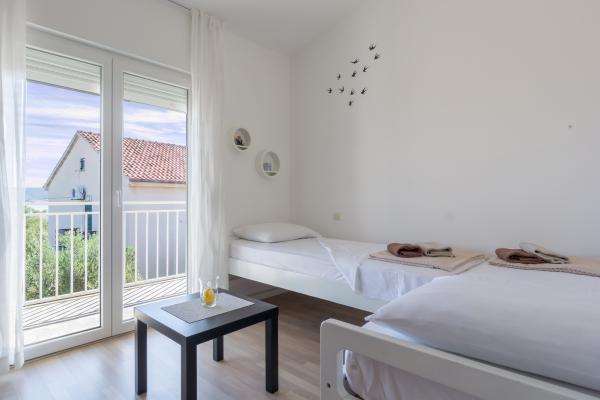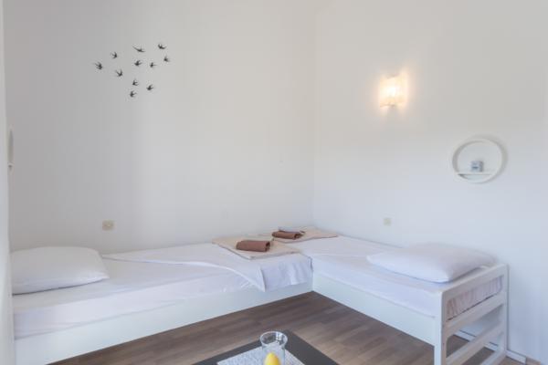 APARTMENT PASMAN HOLIDAY ON YOURSELF! The place Nevidana is located on the island of Pasman near Zadar. This place is a paradise for dusa and body holidays. Savrsen's escape from the city boom and perfect for family vacations. Apartment with 2 bedrooms and a large living room (extra bed), equipped with everything you will need for a vacation in a dream holiday. The apartment is located 50 m from the sea where you are waiting for sandy and sloping beaches, perfect for small children. Apartment, 2 bedrooms, bathroom, kitchen, terrace, balcony, use of grill, air conditioning, free Wi-Fi, pets without extra charge. The ferry port is only 10km away. Close to NP Kornati, not far from Zadar with the world famous Sea Organs and NP Paklenica, and NP Krka! Come on, dearest islands