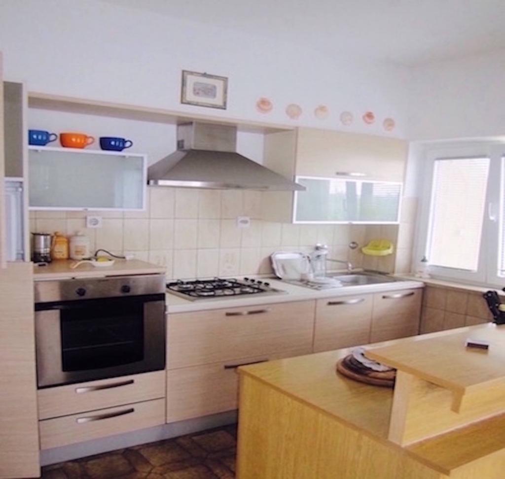 A modern apartment in a villa, first row to the sea, for a quiet and pleasant family vacation away from the stress of the city. Spacious apartment of 85 square meters with terrace, yard with barbecue, separate room with washing machine. 5 m away from the sea and 50 m from a sandy beach ideal for children.