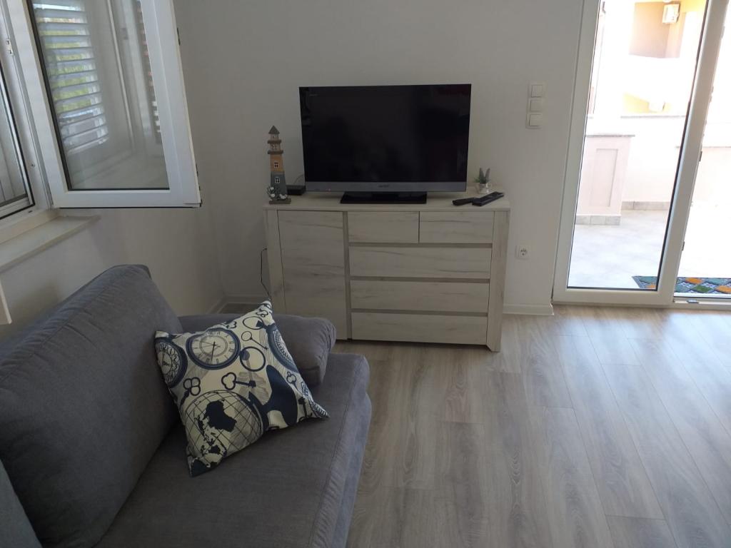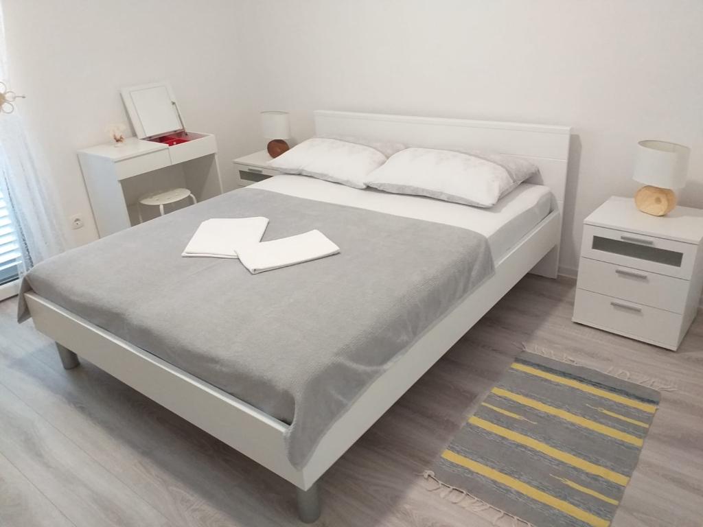 FREE: from 10.9. onwards~ for 7 or more nights 50€ per night~ 1 bedroom apartment (2+2): Apartments in Vrsi Mulo (4km Nin, 20km Zadar), modernly furnished with a spacious terrace, sea view, 200m to Mulo beach. - modernly furnished apartment (40m2 + terrace 15m2) with 1 bedroom - separate entrance - private parking - spacious terrace with a view of the yard, sea and mountains - exit to the terrace from the living room and bedroom, safety fence on the stairs - apartment fully equipped (basic + air conditioning, wifi, satellite TV, dishwasher, washing machine, iron, hairdryer, mosquito net, stove, coffee maker, baby travel cot, bed linen, towels, cleaning products) - gazebo with barbecue and outdoor shower for shared use