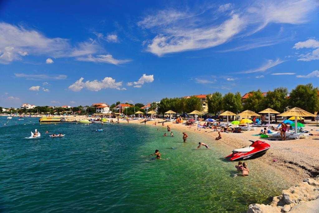 Vrsi Mulo is a quiet little place ideal for a vacation, along the sea there is a promenade with beach volleyball, children's playgrounds and a training area, an aquapark, pedal boats, jet skis, etc., several shops, restaurants, cafes, souvenir shops, fast food, ice cream, donuts, a mini market with a butcher's shop, fishmonger's shop, bakery. The promenade continues into a pine forest, and for those eager to explore the surroundings, natural sandy, pebble and rocky beaches adorn the area. The historic town of Nin is only 4km away, and Zadar is 20km away.