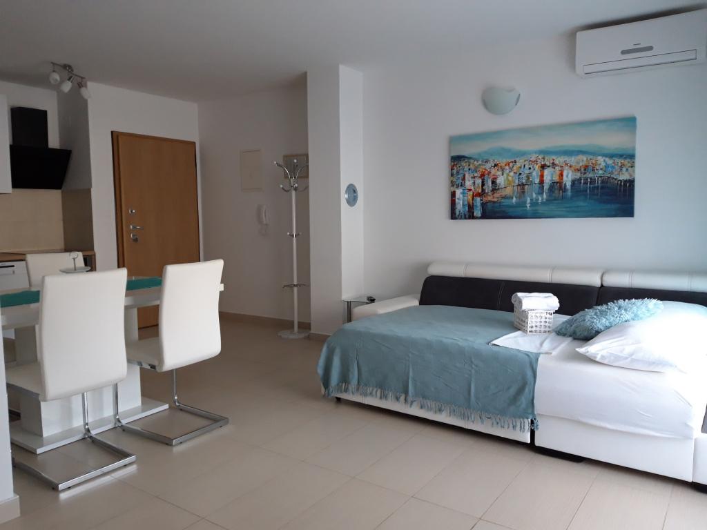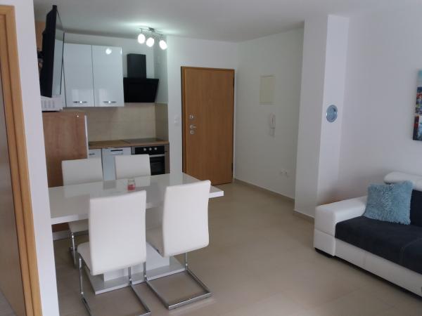 Modernly equipped apartment in a quiet area of Vrsi Mulo, located in the second row to the sea and the beach. The apartment consists of one bedroom with double bed, kitchen with dining room and living room, toilet and terrace, ground floor. Secured parking space next to the building. To the sea only 40 meters, all amenities nearby. Renovated beach, new showers, changing area, umbrellas, beach volleyball court, children's playground, exercise equipment ...
