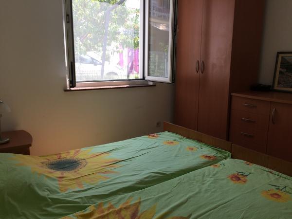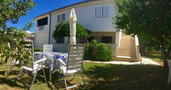 Completely modern apartment on the ground floor, two separate bedrooms with double beds. Beautiful large garden. The facility is located 2 min. walk to the sea and the beach. Terrace-loggia with outdoor furniture and garden furniture with part of the garden for your use only. Barbecue and trampoline for children. Pets are welcome. Parking in the yard. Air conditioning, washing machine.