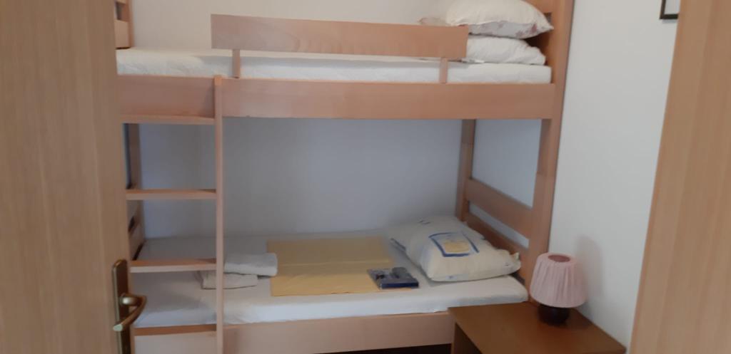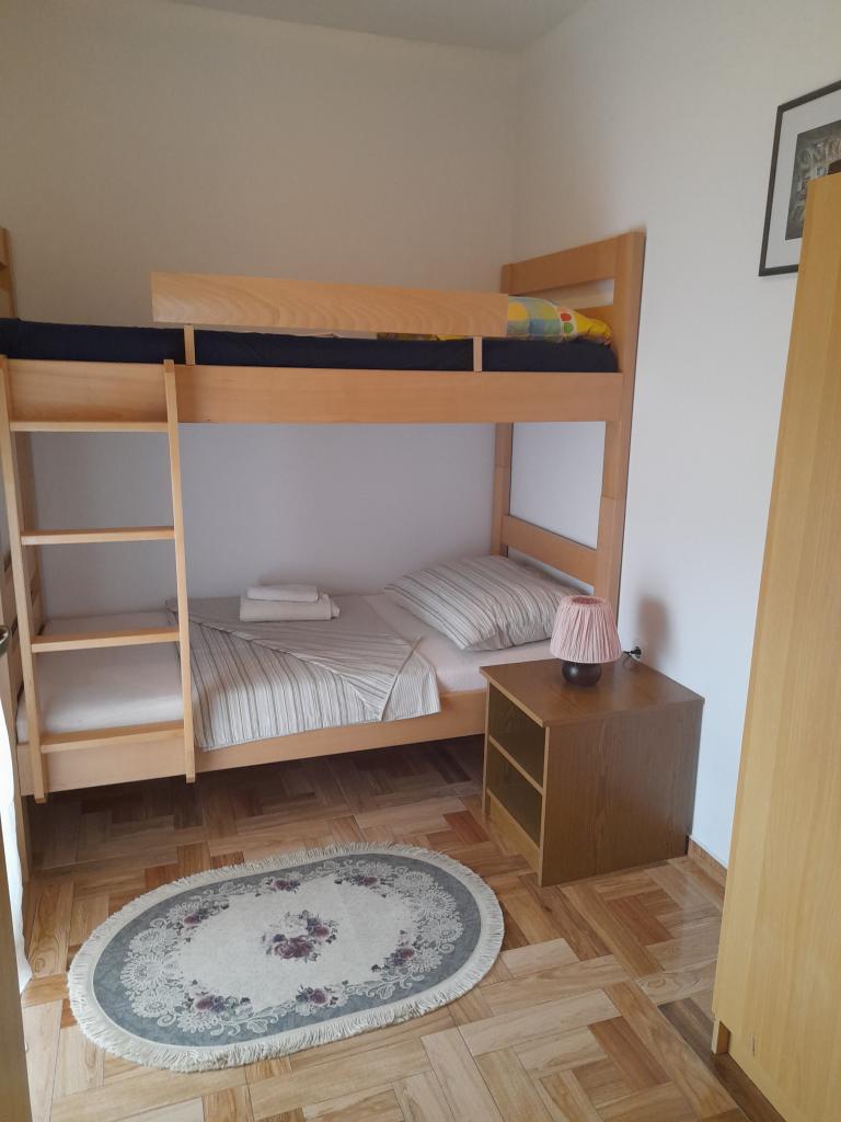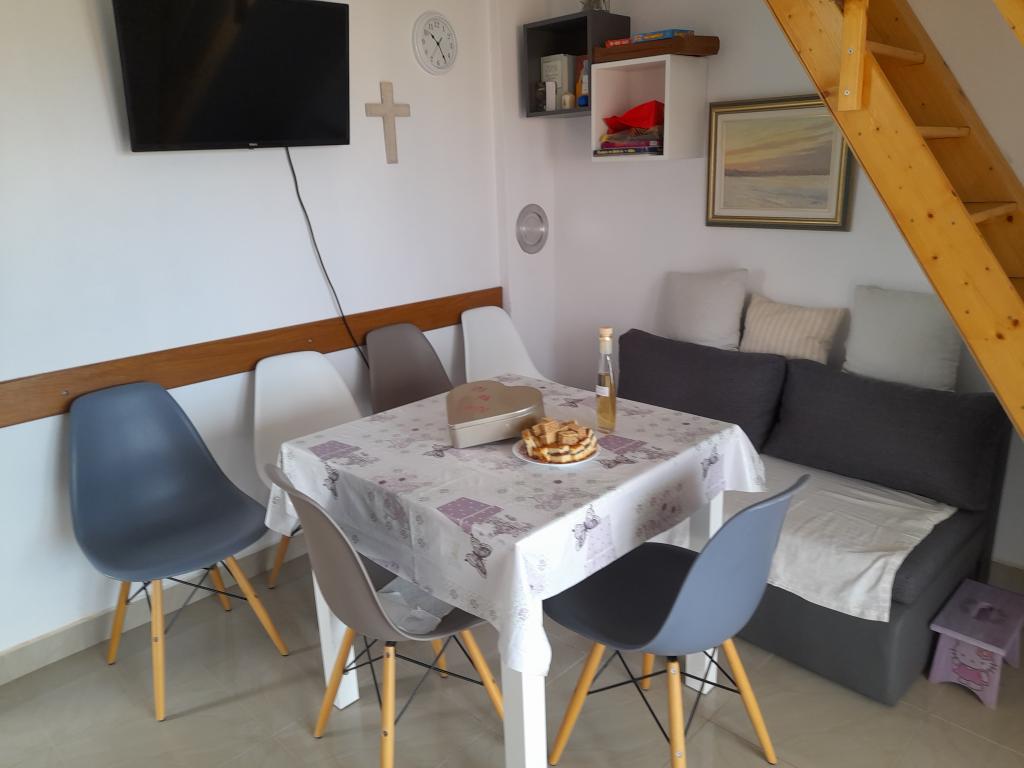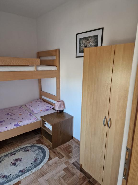 The apartment is available for rent from 25.8.2025 at affordable prices. The 'Idi pa Vidi' apartment is located in Vrsi, near Nin (4 km away), while the distance from Zadar is 23 km. From Zagreb it is a 2.5-hour drive. We offer 2 apartments with separate entrances. The municipality of Vrsi has 14 beaches, while the nearest beach is 320 m away from the apartment. The beaches in Vrsi are mostly sandy and pebble (the most famous beach is near Ričin). Within walking distance there is a supermarket, market, bakery, restaurants, butcher shop and amusement park. The house is located in a dead-end street, with a landscaped grassy yard and an outdoor shower and barbecue are available for guests. The apartment on the first floor has a living room with a terrace and a sea view, and is divided into two levels. The first level has 2 bedrooms (one of which has a double bed and the second room with a balcony has a bunk bed (with 2 beds) and a bathroom, while the 3rd bedroom (which also has a toilet) is located on the gallery of the apartment. The apartment can accommodate a maximum of 7 people.