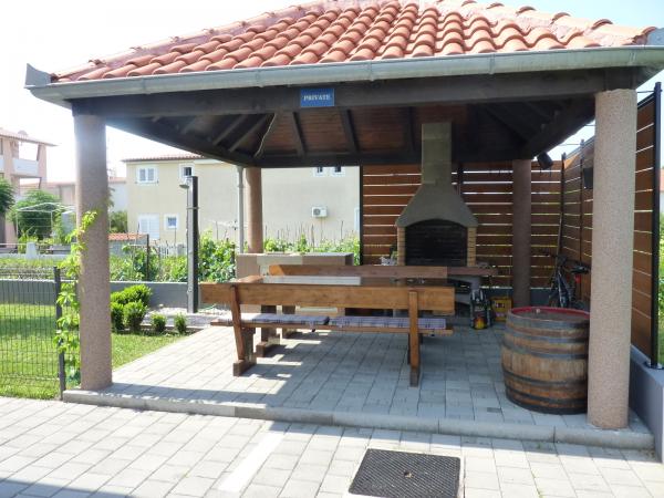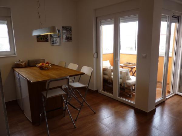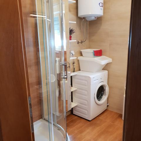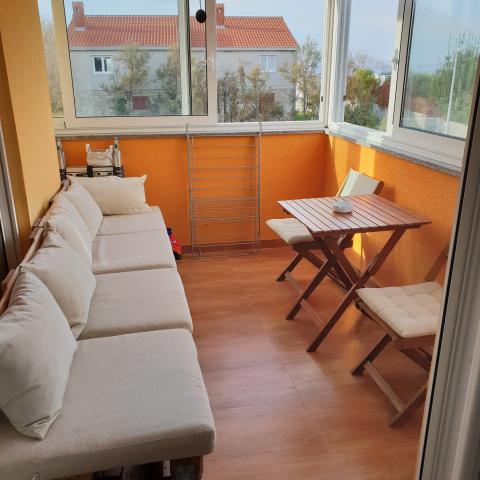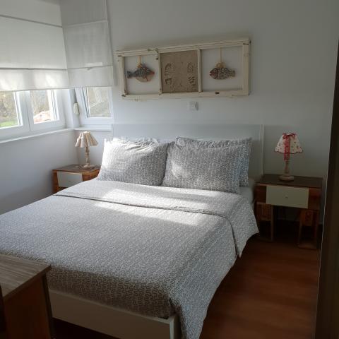 Newly built apartment in a quiet location, fully equipped with a sea view. A sandy beach ideal for children, only 50 m from the apartment and the center of Nin a 15-minute walk away. Secured parking space in the fenced yard. The apartment consists of one bedroom, a living room with an extra bed for two people, a kitchen with a dining area, a bathroom and a balcony. There is also a covered barbecue with wooden benches and a table.