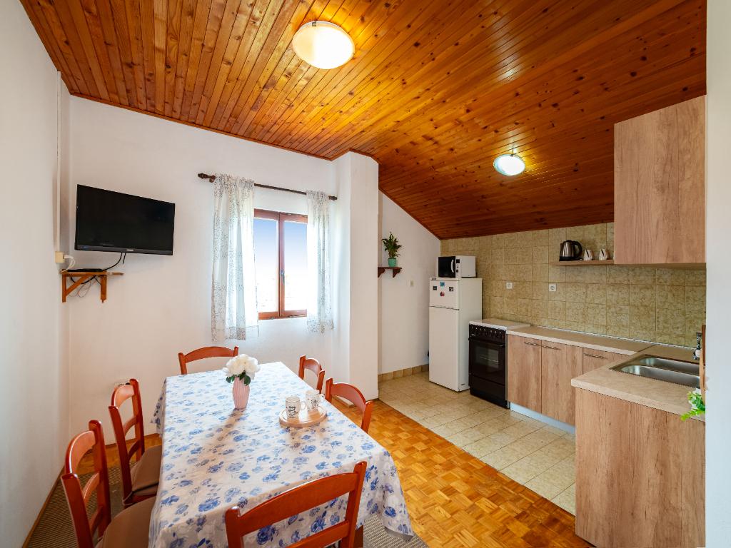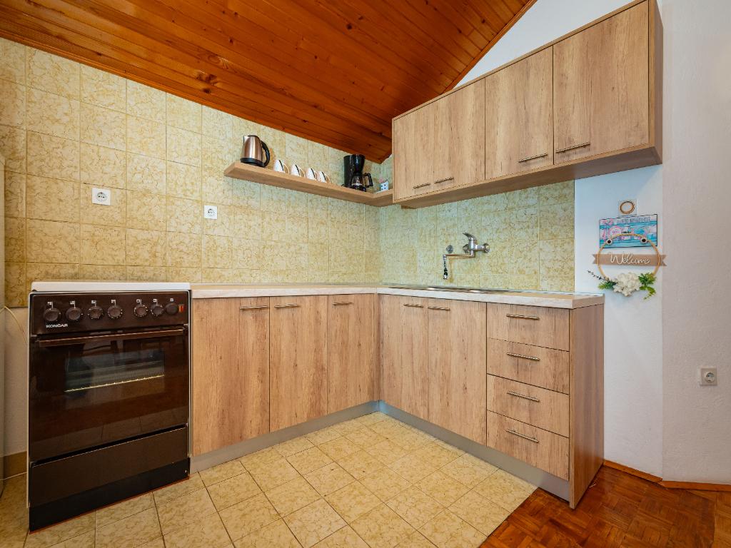 The apartment is as described. Well-equipped, spacious, and clean. Conveniently located. The kitchen offers sea and mountain views. Nearby are two large supermarkets (Konzum, Tommy) and a bakery. Very nice owners.