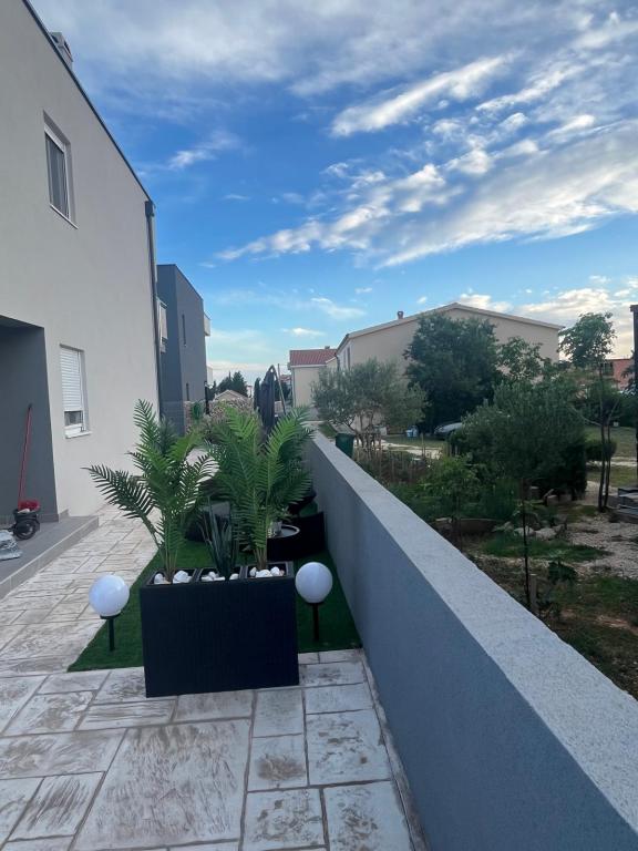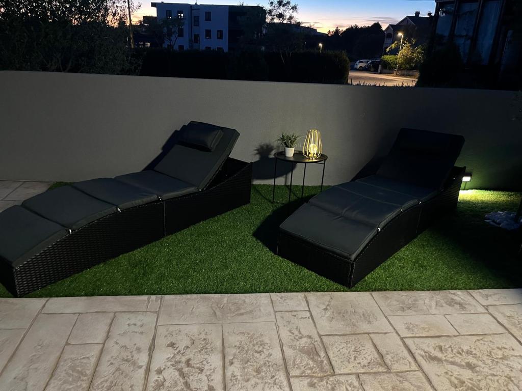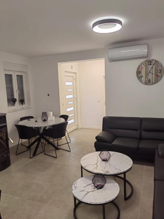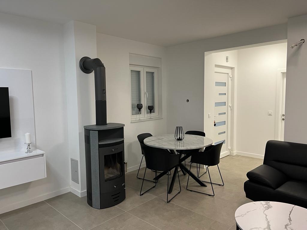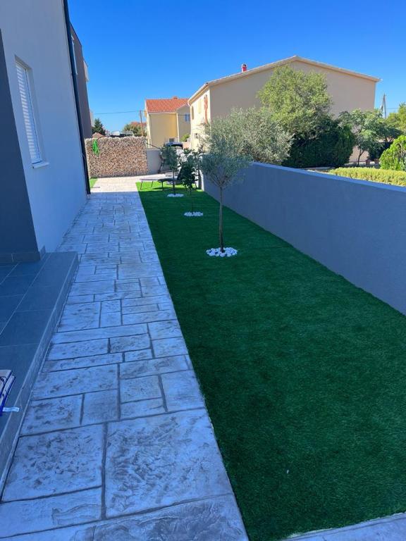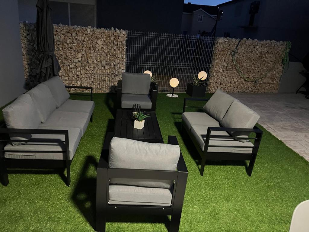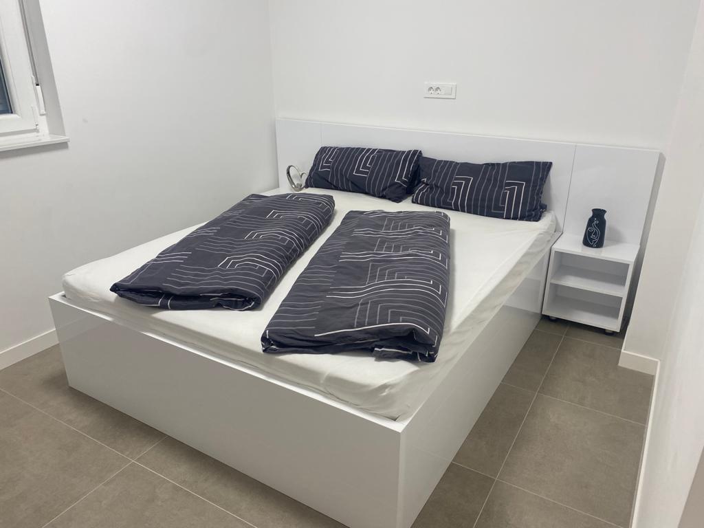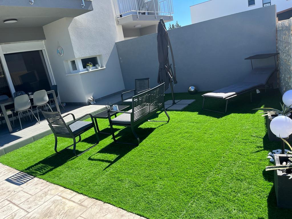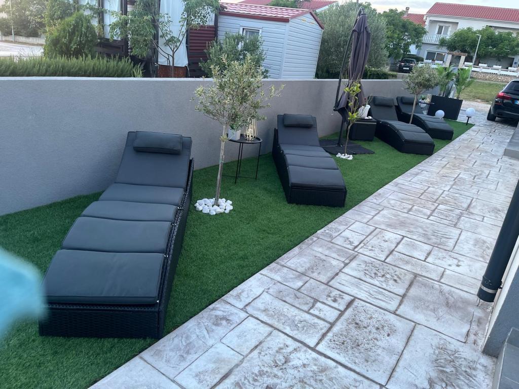 Modern and fully furnished three-room apartment in a peaceful and quiet part of the village of Vrsi. The property is located 800 meters from the sea, has 3 bedrooms equipped with air conditioning and TV, two bathrooms, a beautiful terrace with a massage tub, a dining table and sun loungers. The kitchen is fully equipped, and another TV and air conditioner are available in the common area.