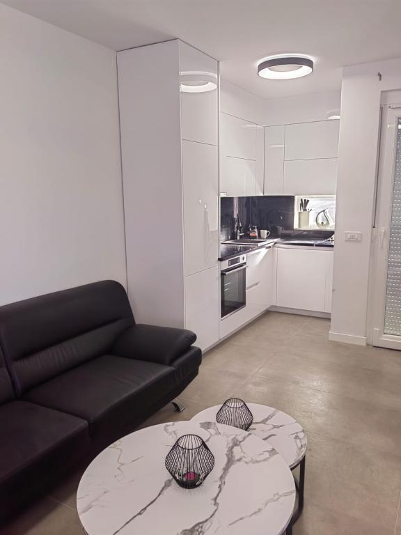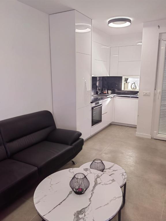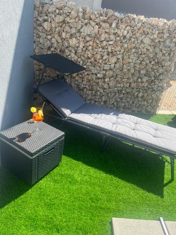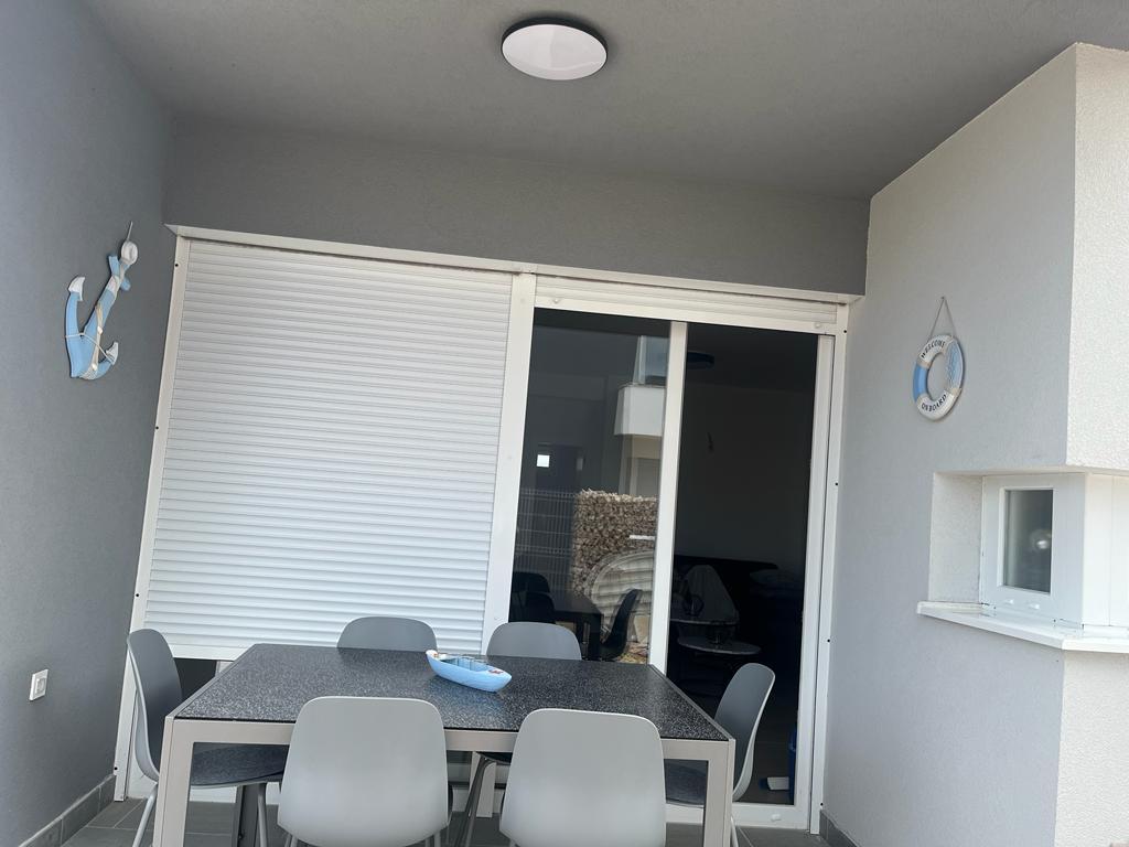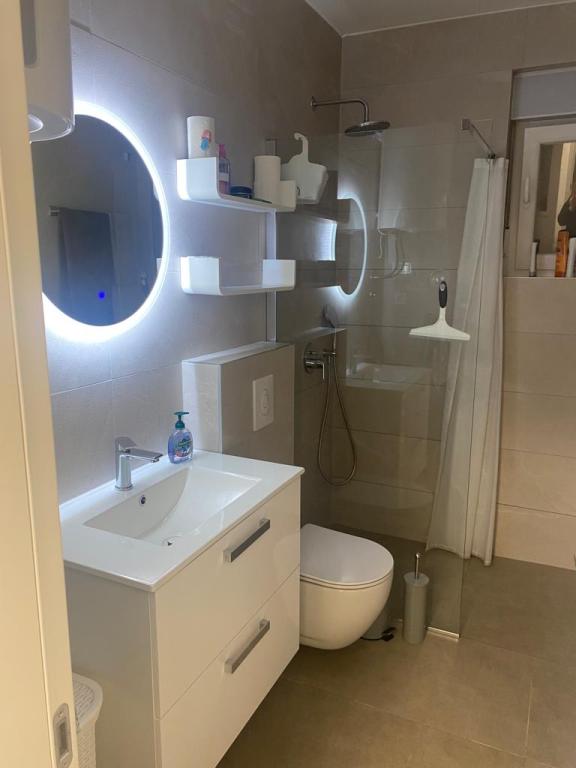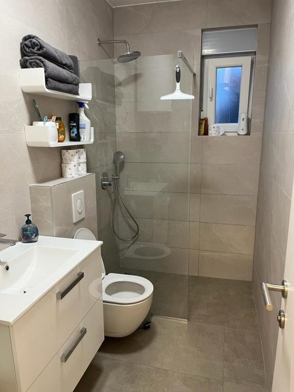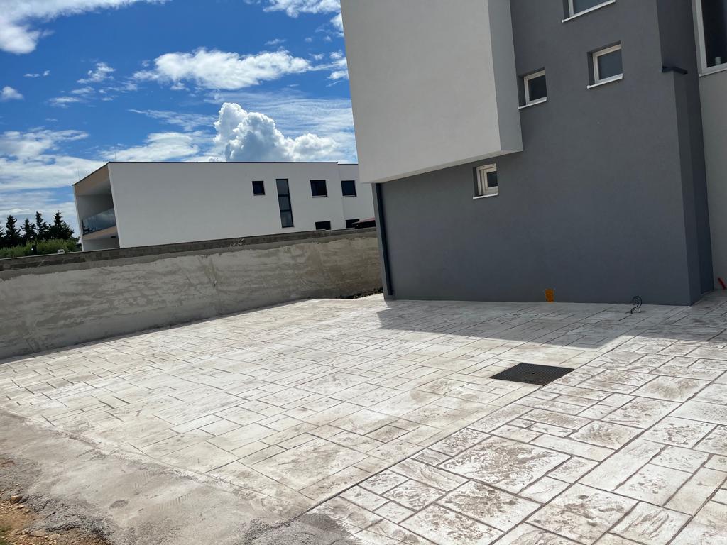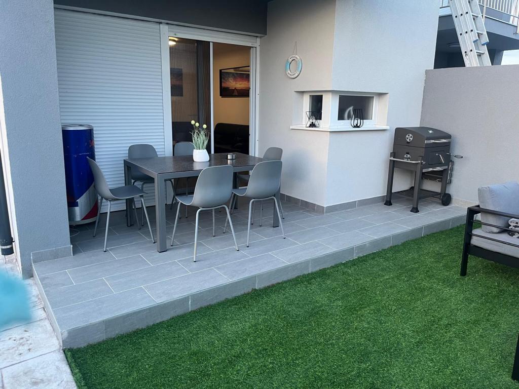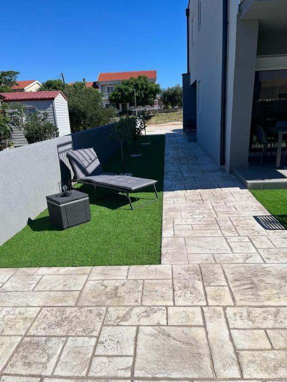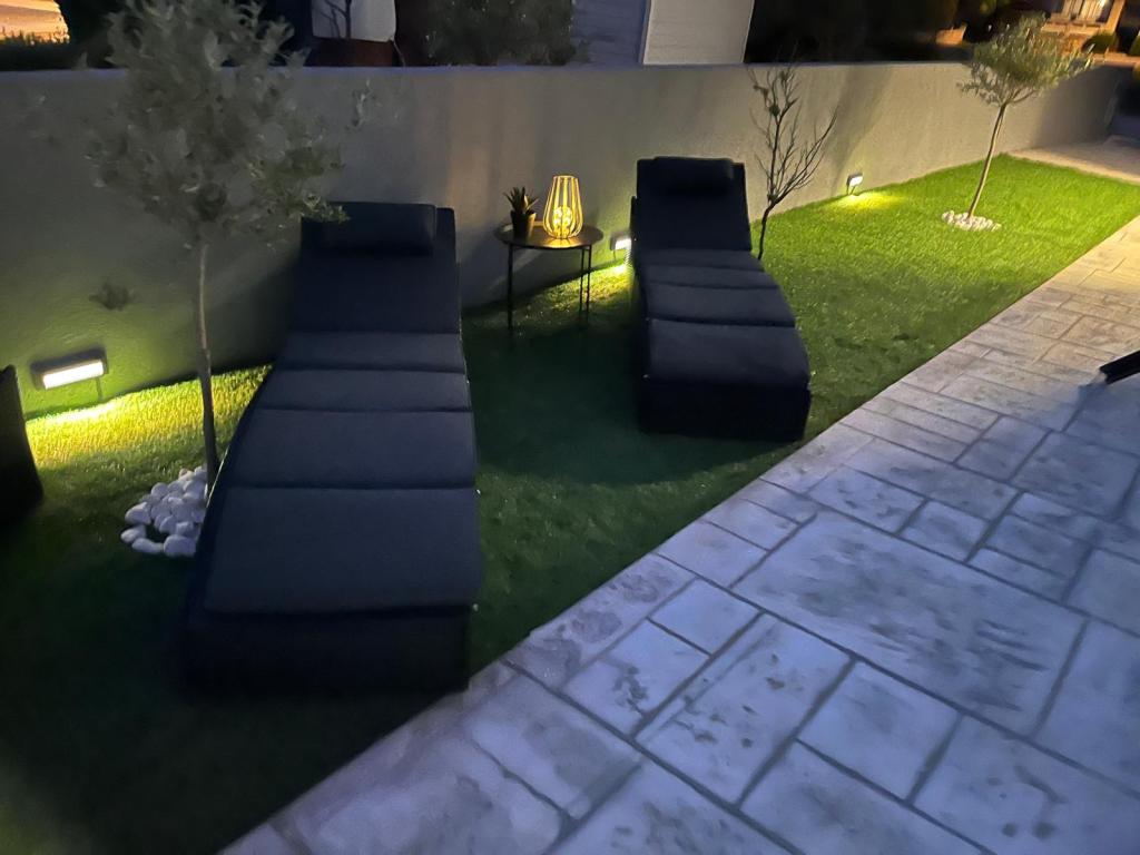Modern and fully furnished three-room apartment in a peaceful and quiet part of the village of Vrsi. The property is located 800 meters from the sea, has 3 bedrooms equipped with air conditioning and TV, two bathrooms, a beautiful terrace with a massage tub, a dining table and sun loungers. The kitchen is fully equipped, and another TV and air conditioner are available in the common area.