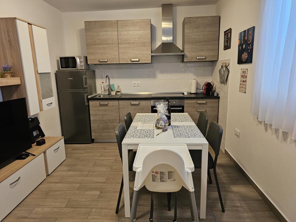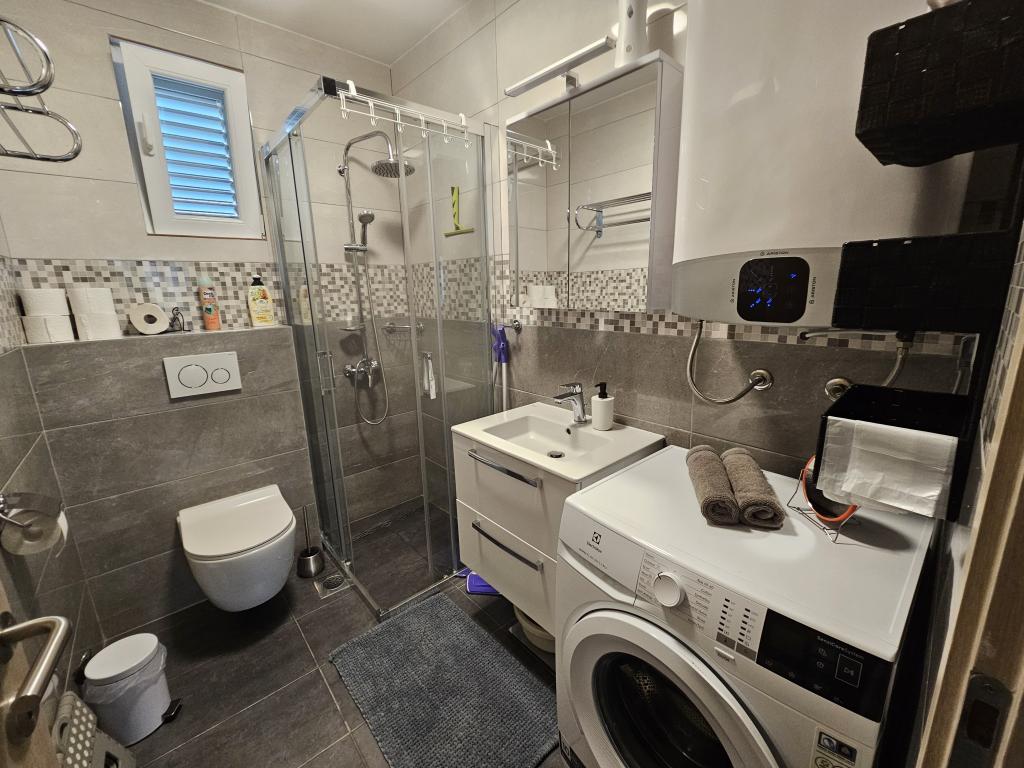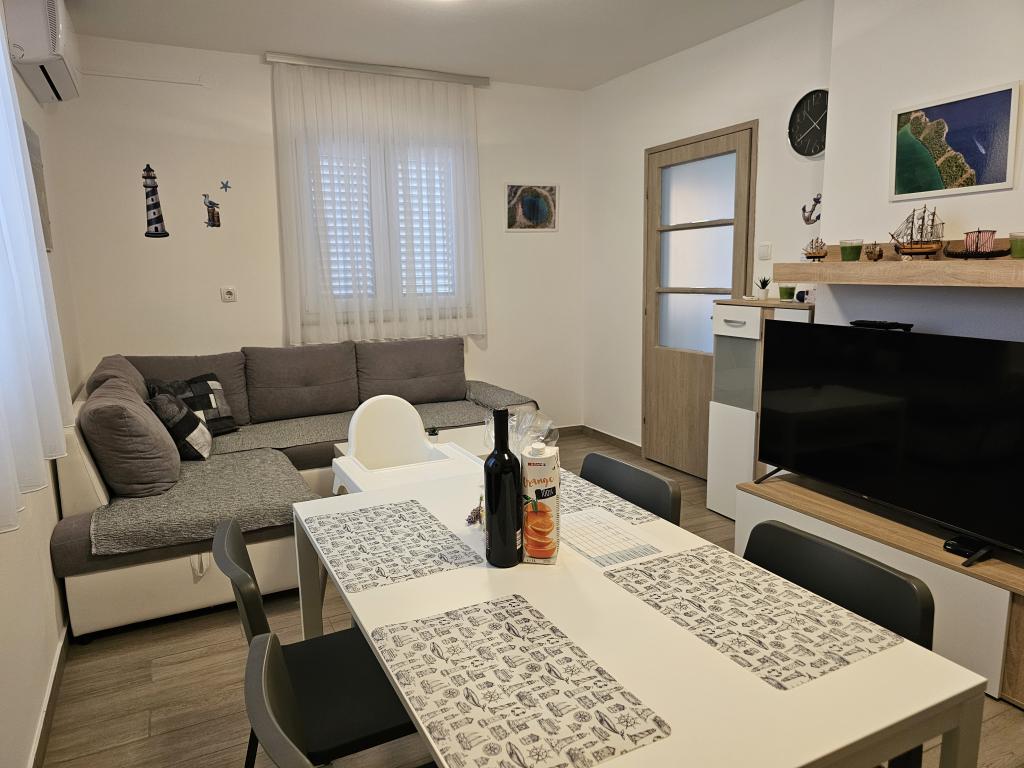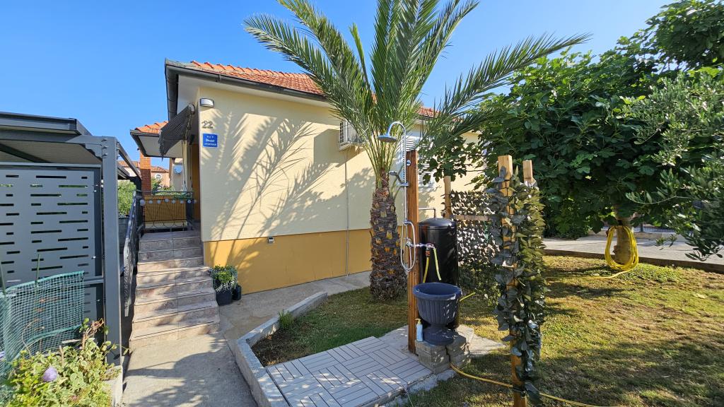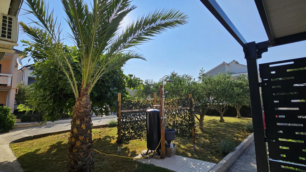 Newly renovated modern apartment with two bedrooms. Complete bathroom with shower and washing machine. Fully equipped kitchen (induction, oven, dishwasher, microwave, coffee maker, toaster). Free wi-fi, smart android TV. Large terrace with sun protection. Free use of the fenced and landscaped yard with solar shower. Use of barbecue. Parking provided in the yard with the possibility of charging electric vehicles with prior notice. Close to the beach. Beautiful promenade along the beach, several kilometers long, connecting the settlements of Vrsi-Mulo and Zukve. There are restaurants and bars along the promenade.