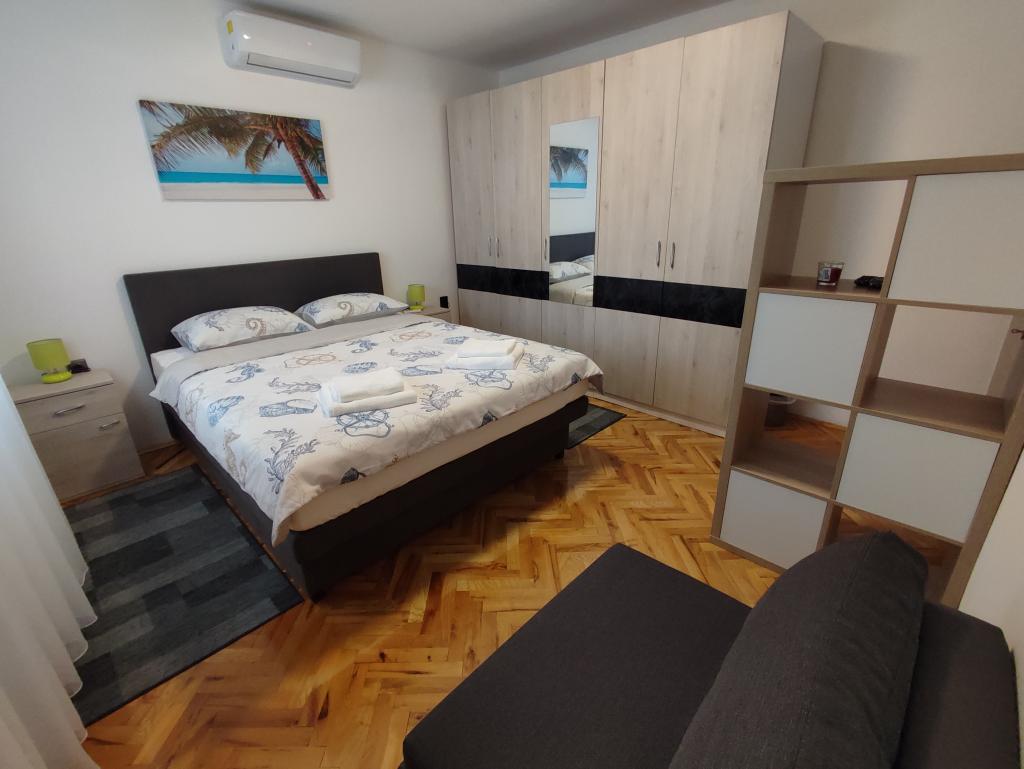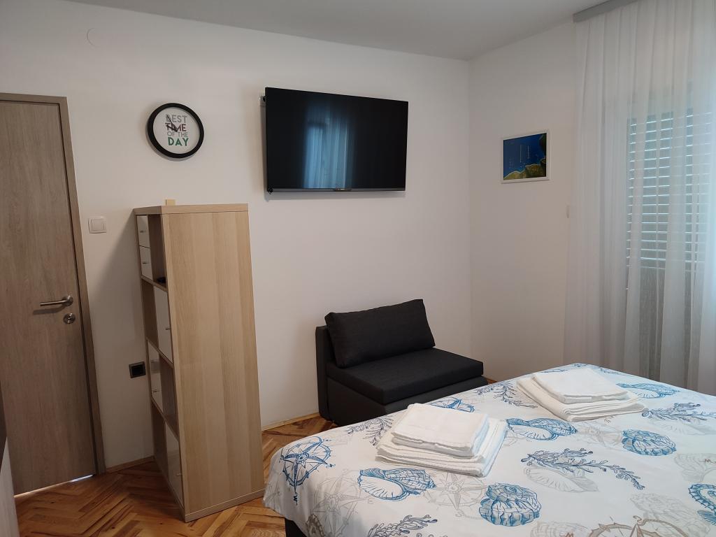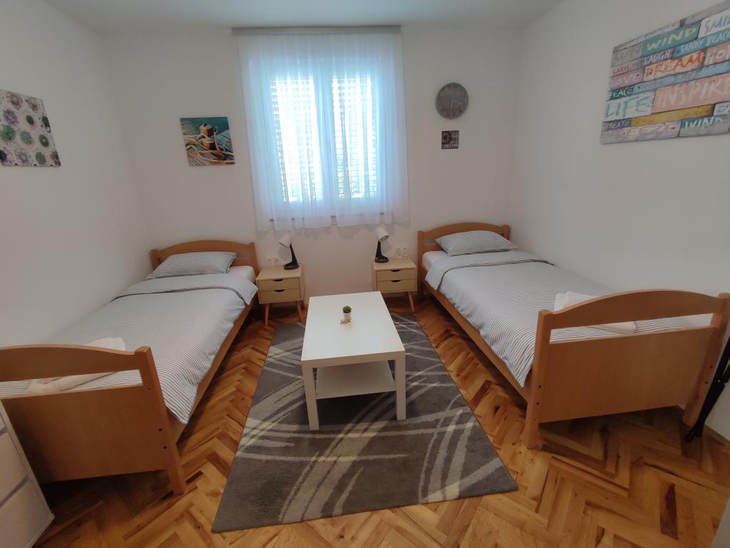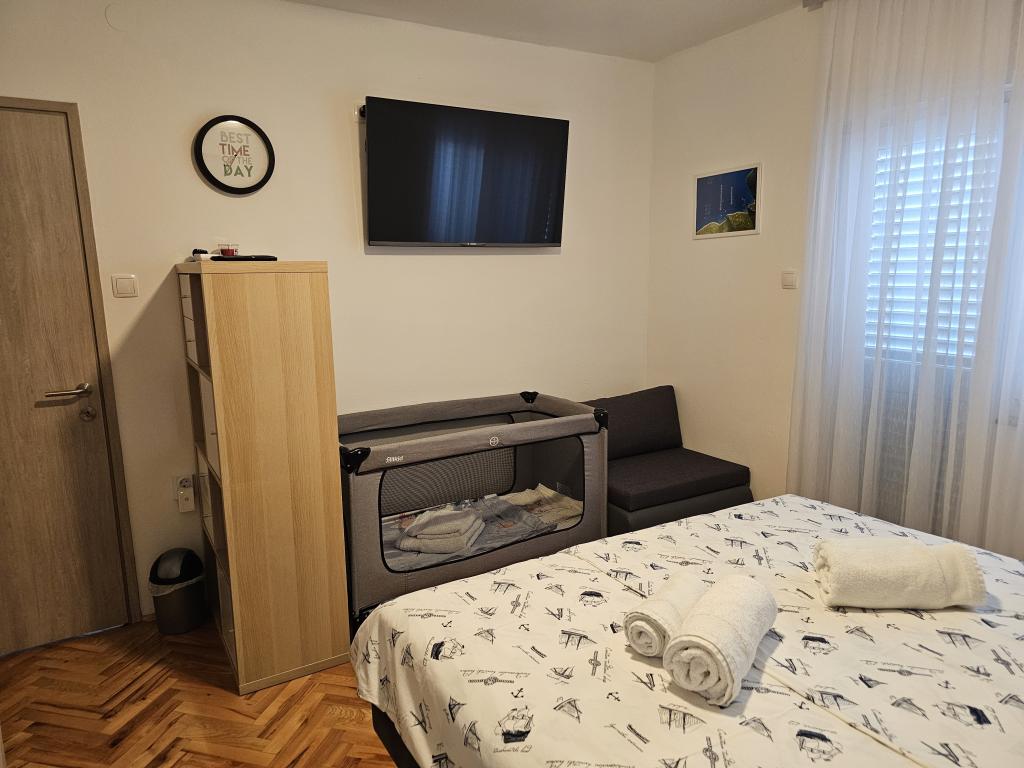 Newly renovated modern apartment with two bedrooms. Complete bathroom with shower and washing machine. Fully equipped kitchen (induction, oven, dishwasher, microwave, coffee maker, toaster). Free wi-fi, smart android TV. Large terrace with sun protection. Free use of the fenced and landscaped yard with solar shower. Use of barbecue. Parking provided in the yard with the possibility of charging electric vehicles with prior notice. Close to the beach. Beautiful promenade along the beach, several kilometers long, connecting the settlements of Vrsi-Mulo and Zukve. There are restaurants and bars along the promenade.