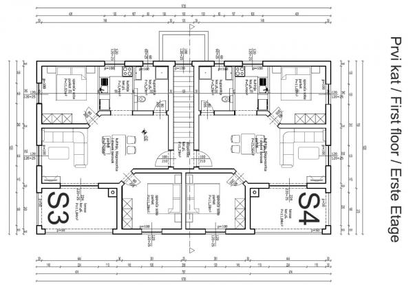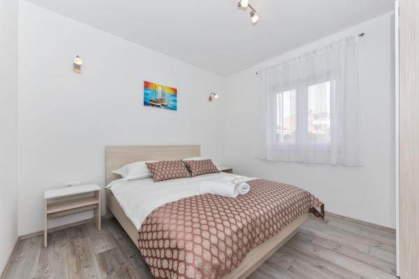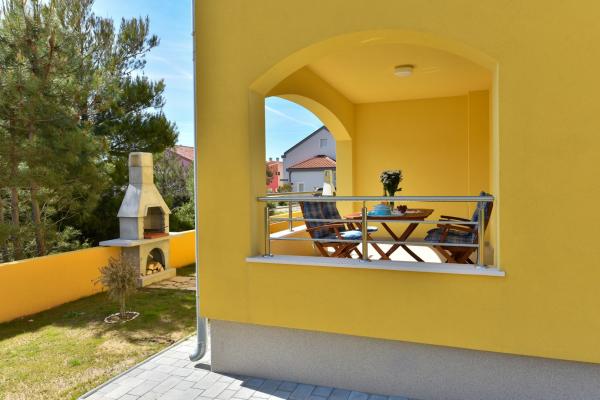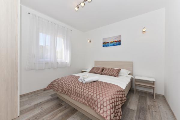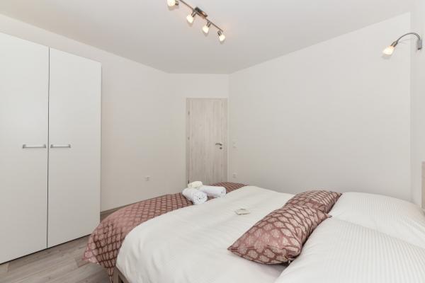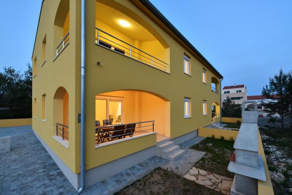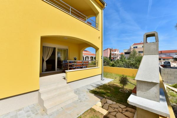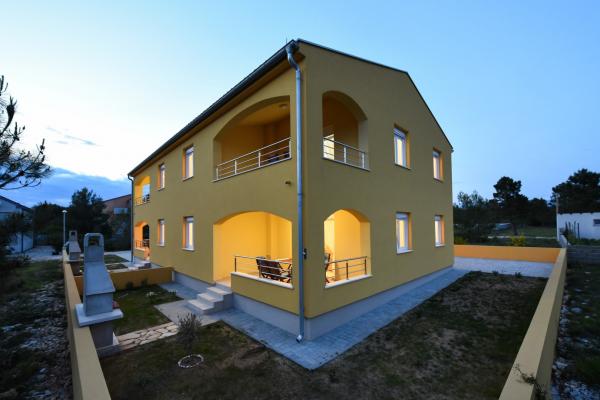 Four comfortable and cosy apartments are situated in a newly built house, in the vicinity of the sea and beautiful beach in Vrsi village. Each apartment has square area of 70 sq. meters plus 12 sq. meters of terrace, two bedrooms, is air-conditioned and with modern furnishing. They are all equipped with everything needed for a perfect vacation. Two apartments on the ground floor have their own garden with barbeque, and each apartment on the first floor has its own big terrace. Parking lot is situated in the yard. Apartments on the first floor have a shared grill place in the yard. Apartments S1 and S2 are on the ground floor while apartments S3 and S4 are situated on the first floor. The house is located in the peaceful part of Vrsi, near the beach and all other facilities – promenade, children playground, restaurant and bars, all in pedestrian zone.