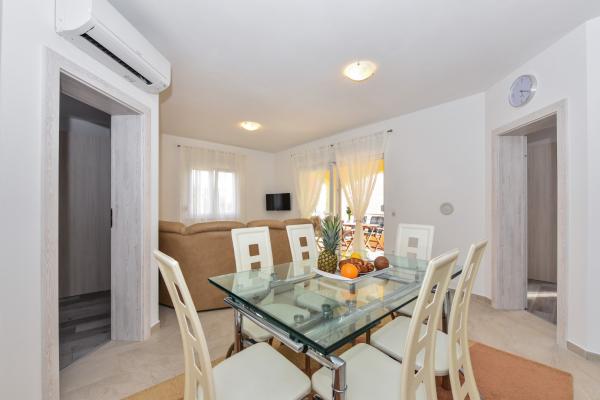 Read more Accommodation unitsREMARK Check-in: 14:00 h Check-out: 10:00 h Apartment S1: accommodation for 4 1 persons Apartment S2: accommodation for 4 persons Apartment S3: accommodation for 4 persons Apartment S4: accommodation for 4 persons 01. 04. –30. 06. & 01. 09. –31. 10. - Minimum stay 3 days 01. 07. –31. 08. - Minimum stay 7 days Pets are not allowed. Tourist tax, water, electricity, air-condition, final cleaning and wi fi are included in the price. Each unit has its own parking space.