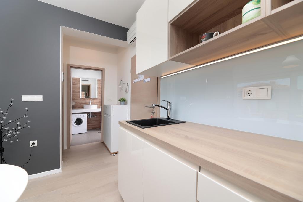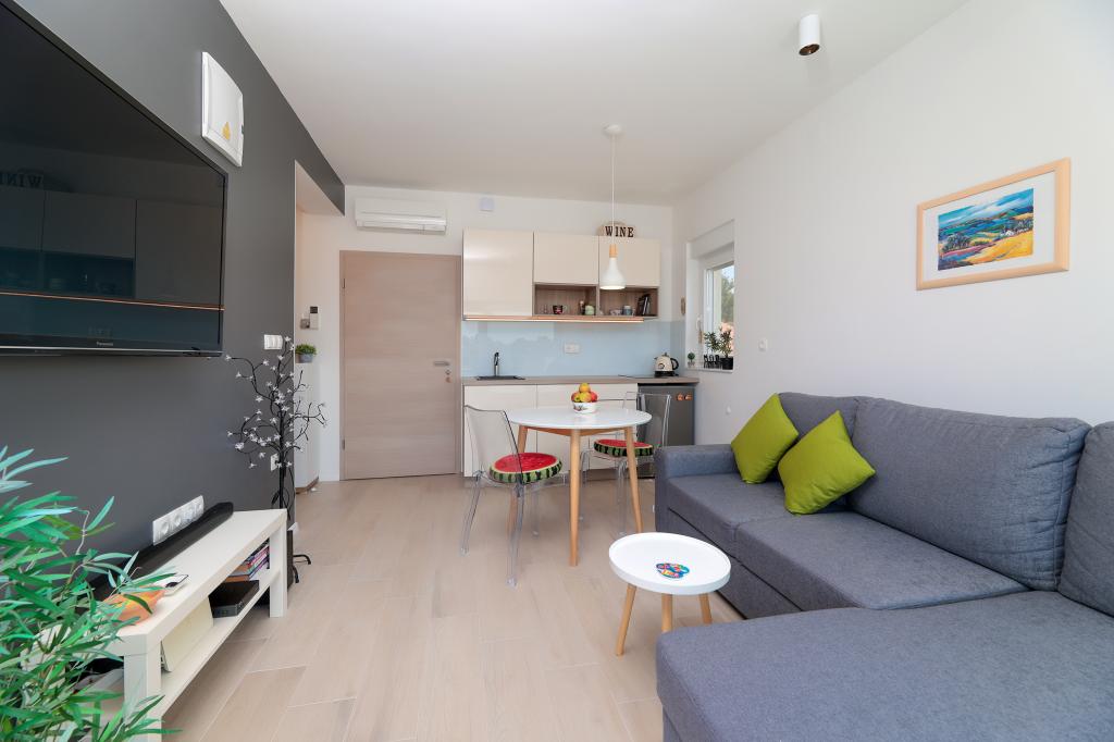The apartments are luxuriously equipped with inverter Mitsubishi air conditioners in each room, large diagonal TV with all European satellite programs, Netflix, modern kitchen with induction hob, bathroom with shower, large modern balcony awning that rises and falls, and large apartment "Alan 3" has a desk with a 4K monitor large diagonal. You can also rent electric bicycles with a range of over 60 km on a single battery charge.